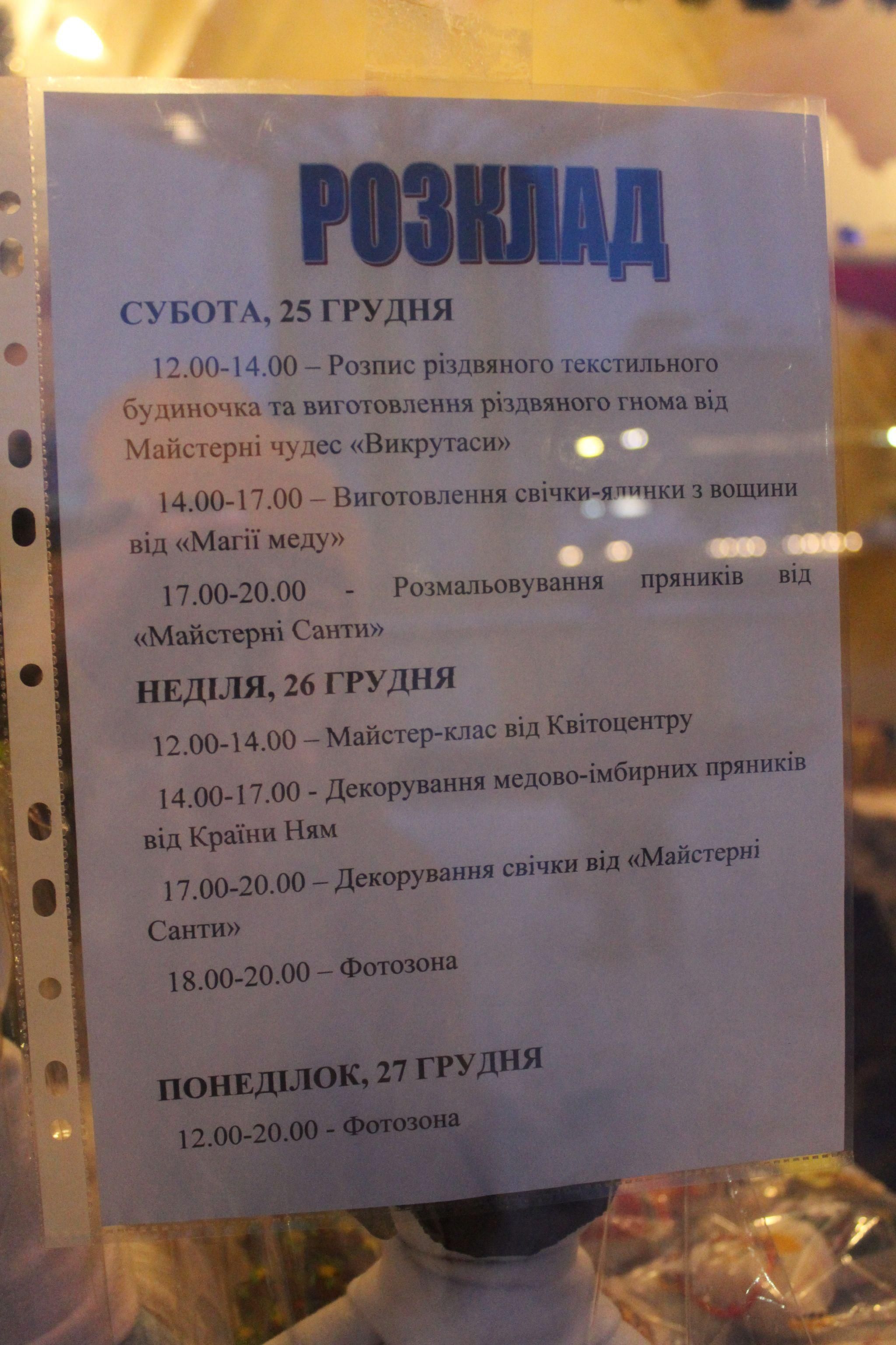 Перед будівлею Драмтеатру встановили хатинку Святого Миколая. До нього зайти можуть всі охочі. Тут також проводять різні майстеркласи. Їх розклад є нижче.