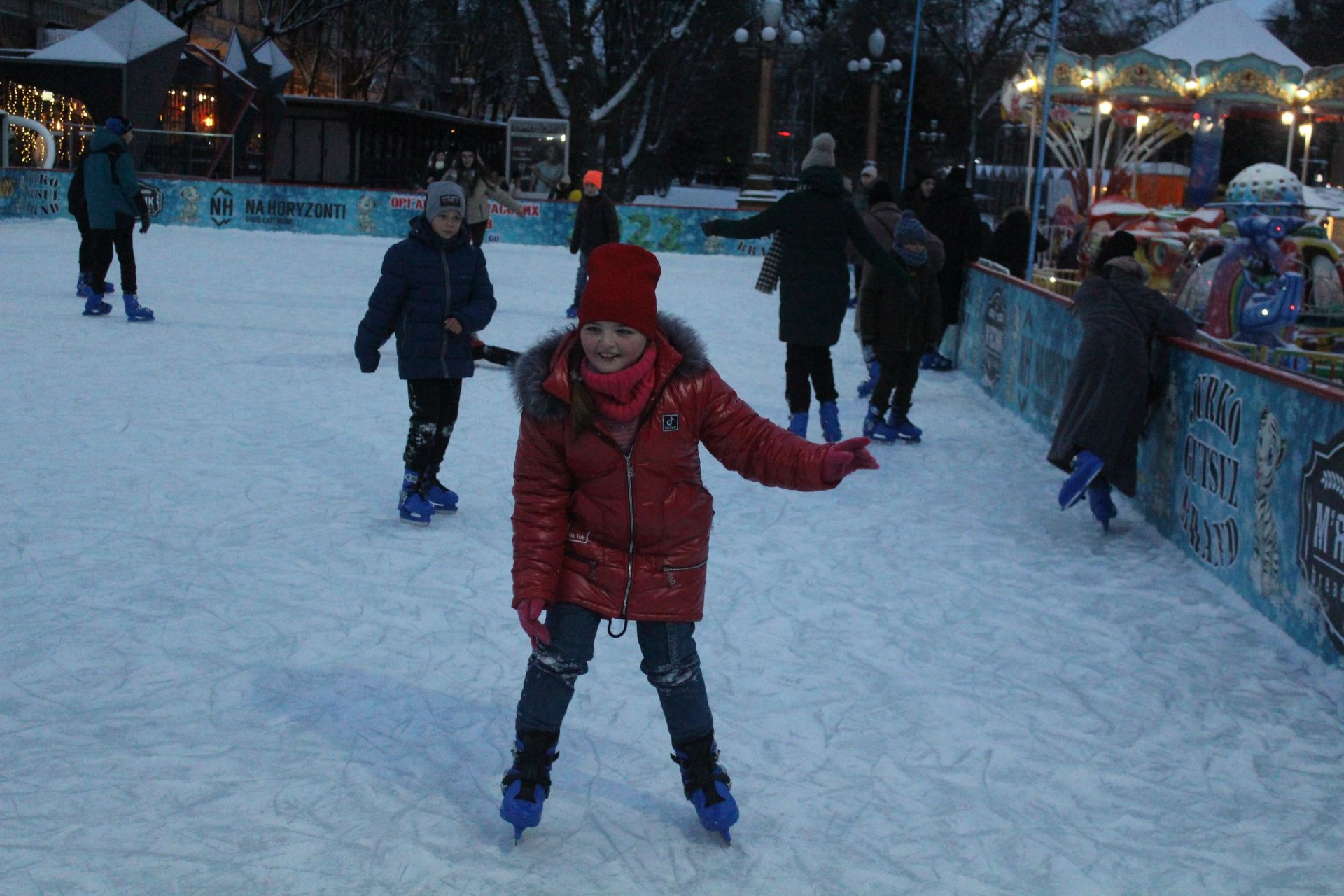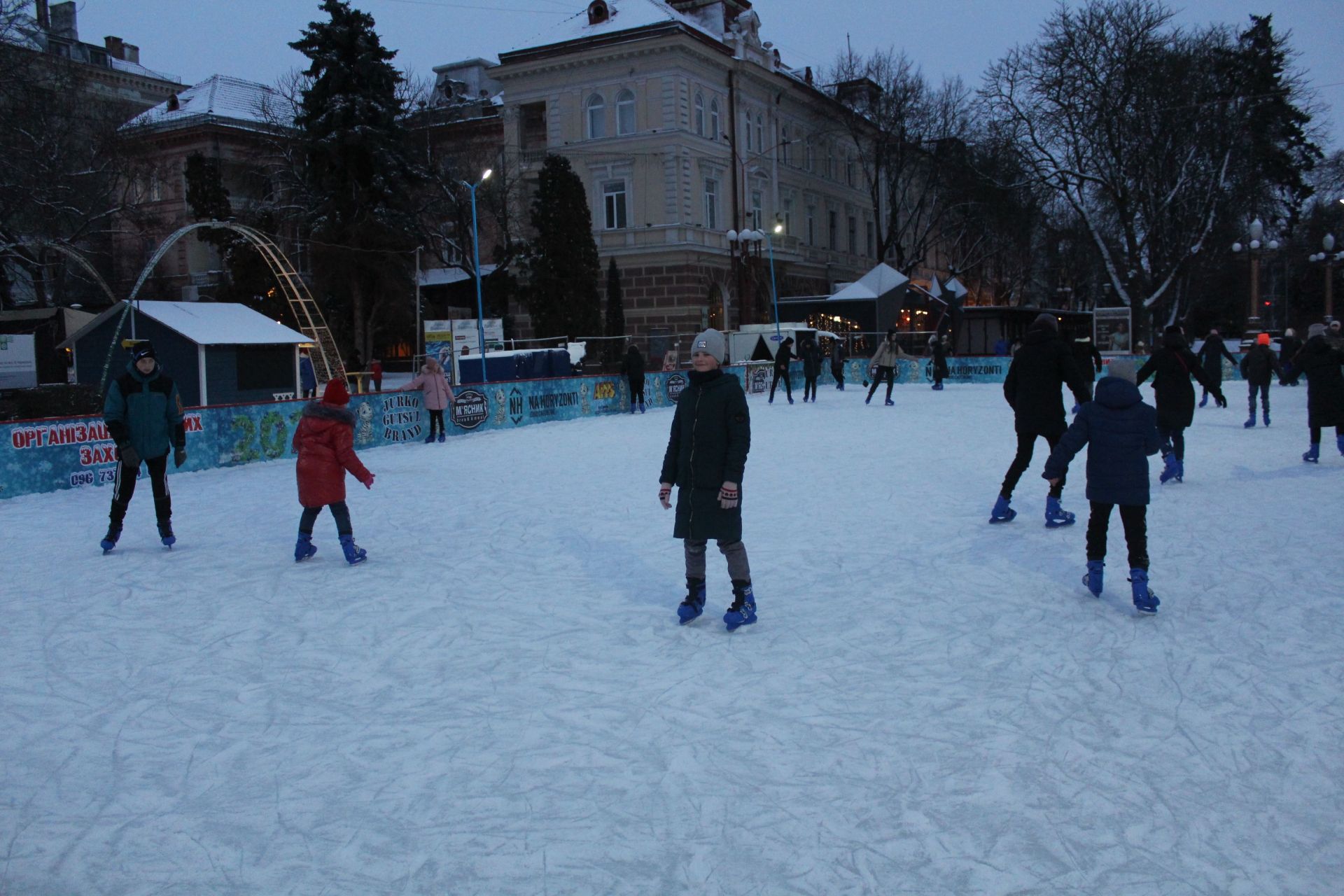 На ковзанці чимало відвідувачів. Дозволено кататись дорослим і малюкам. Ціни на прокат ковзанів публікуємо нижче.