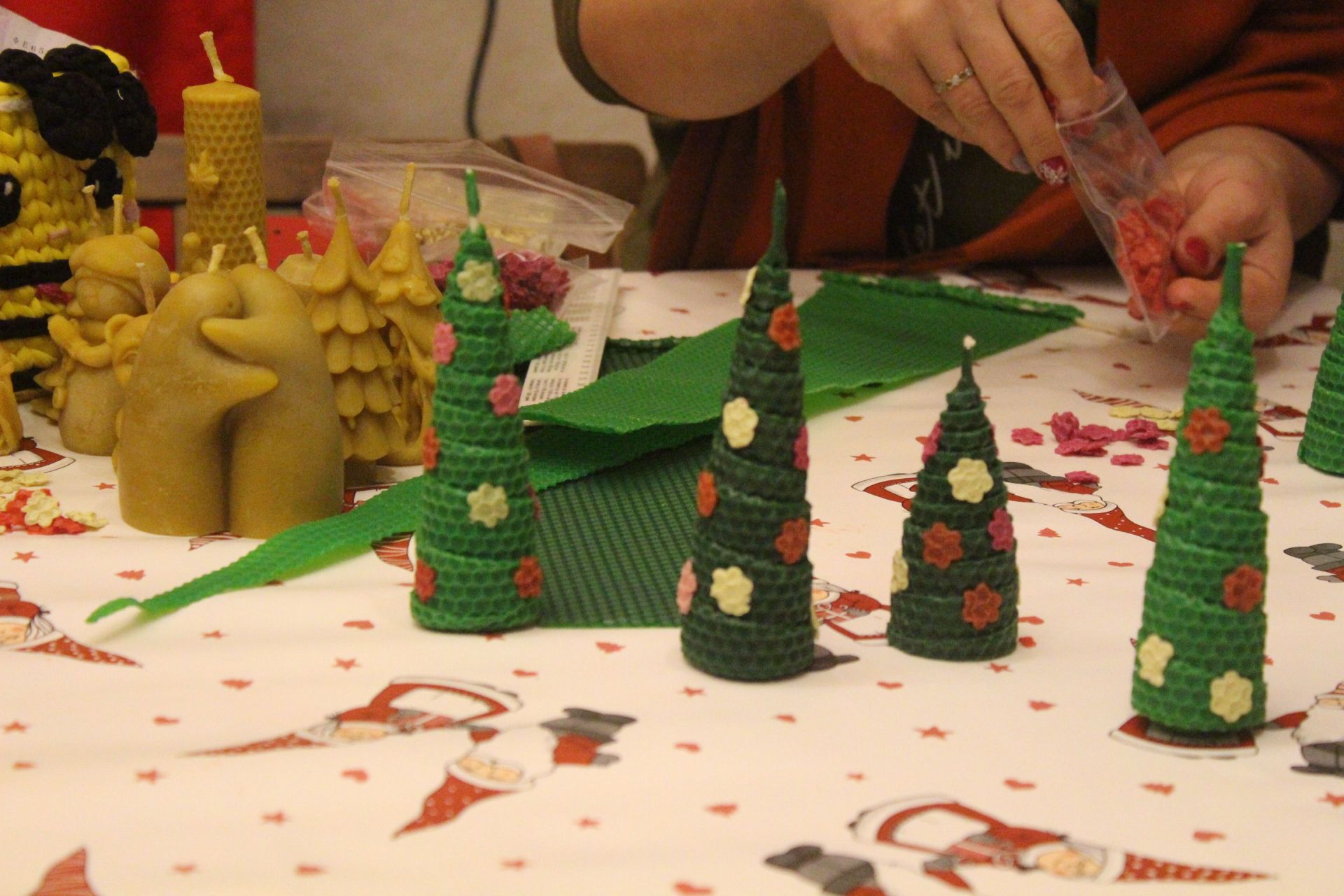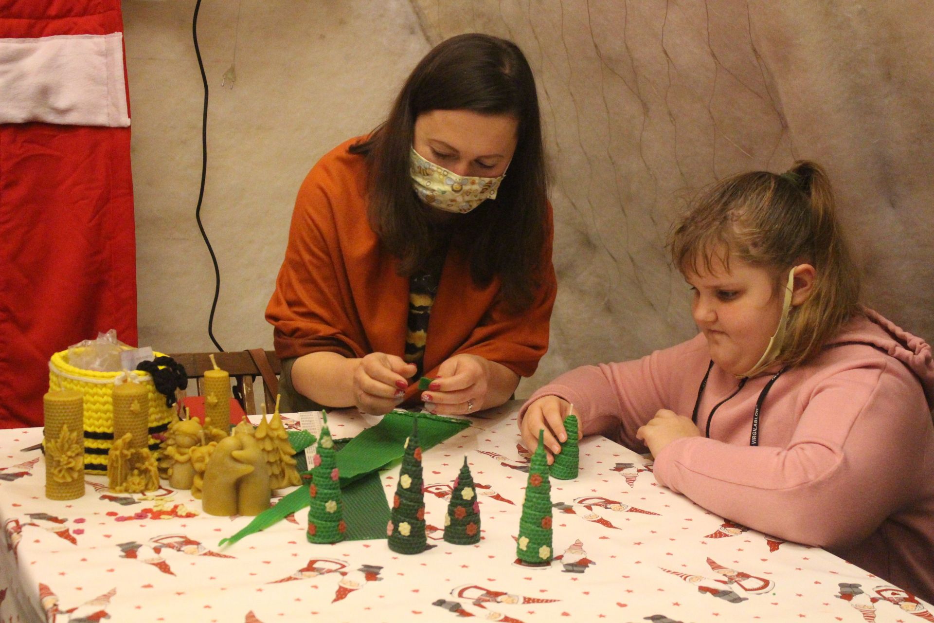 Підчас нашого візиту до цієї локації відбувався майстерклас із створення різдвяних свічок. Маленька тернополянка Олена разом з мамою вчилась робити ці новорічні прикраси.