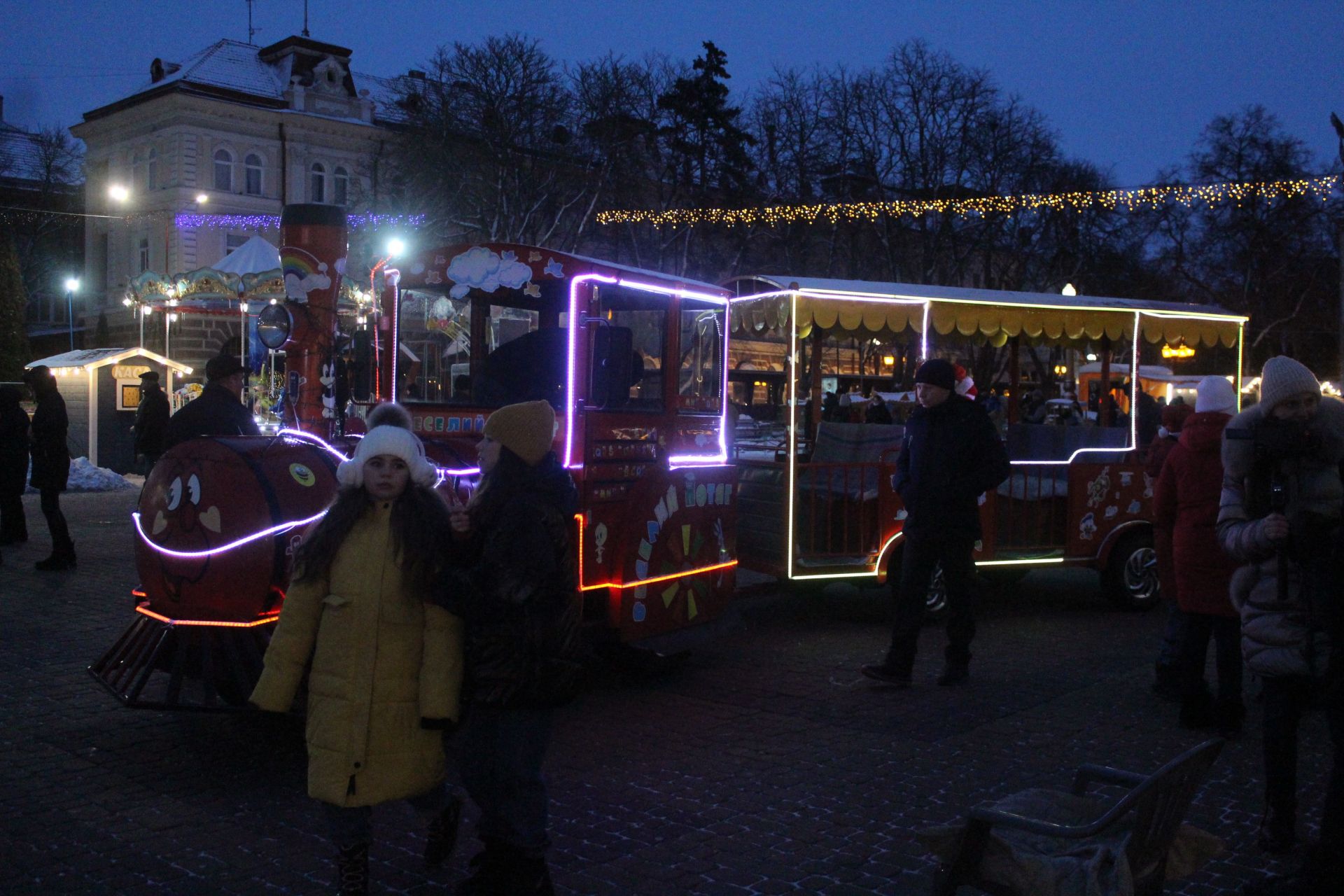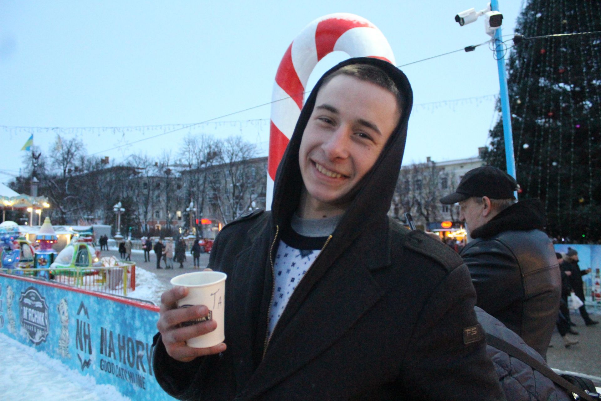 Увечері 25 грудня на території містечка чимало людей. Хтось прийшов сфотографуватись біля ялинки, хтось — випити ароматного глінтвейну.