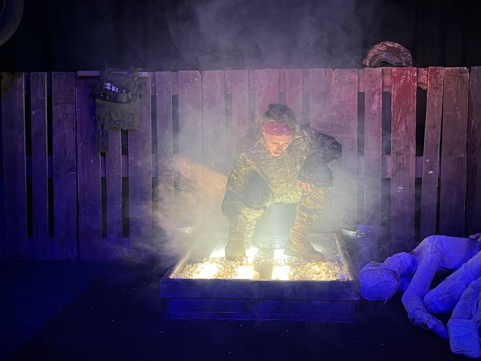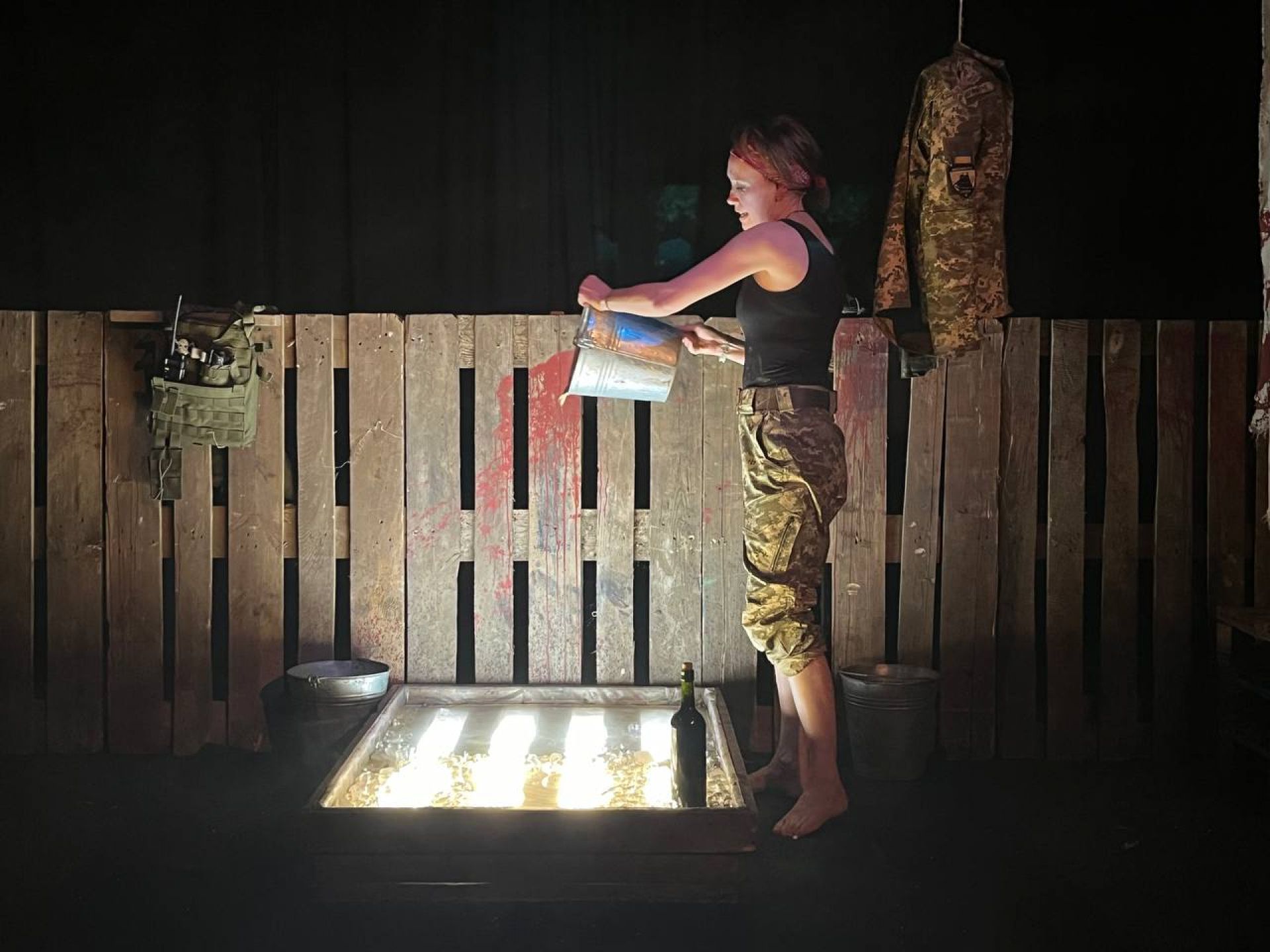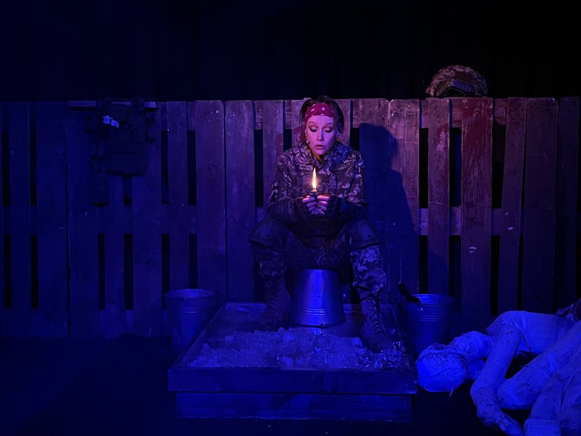 — На сцені перед глядачами постає Наталка, яка гине на фронті. За кілька хвилин до смерті вона згадує, як кохає свого воїна, який її привів до війни. Ця постановка – інтерпретація оригінального твору. У виставі сюжетну лінію продовжили, оскільки в п'єсі йдеться тільки про період АТО. Також режисер вирішив додати кілька молитов, – розповідає директор Херсонського облмуздрамтеатру Олександр Книга.