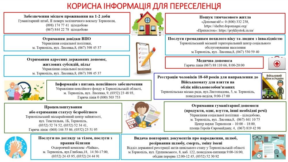 Зведену інформацію для внутрішньо переміщених громадян, які прибули у Тернопіль, опублікували на сайті Тернопільської міської ради.