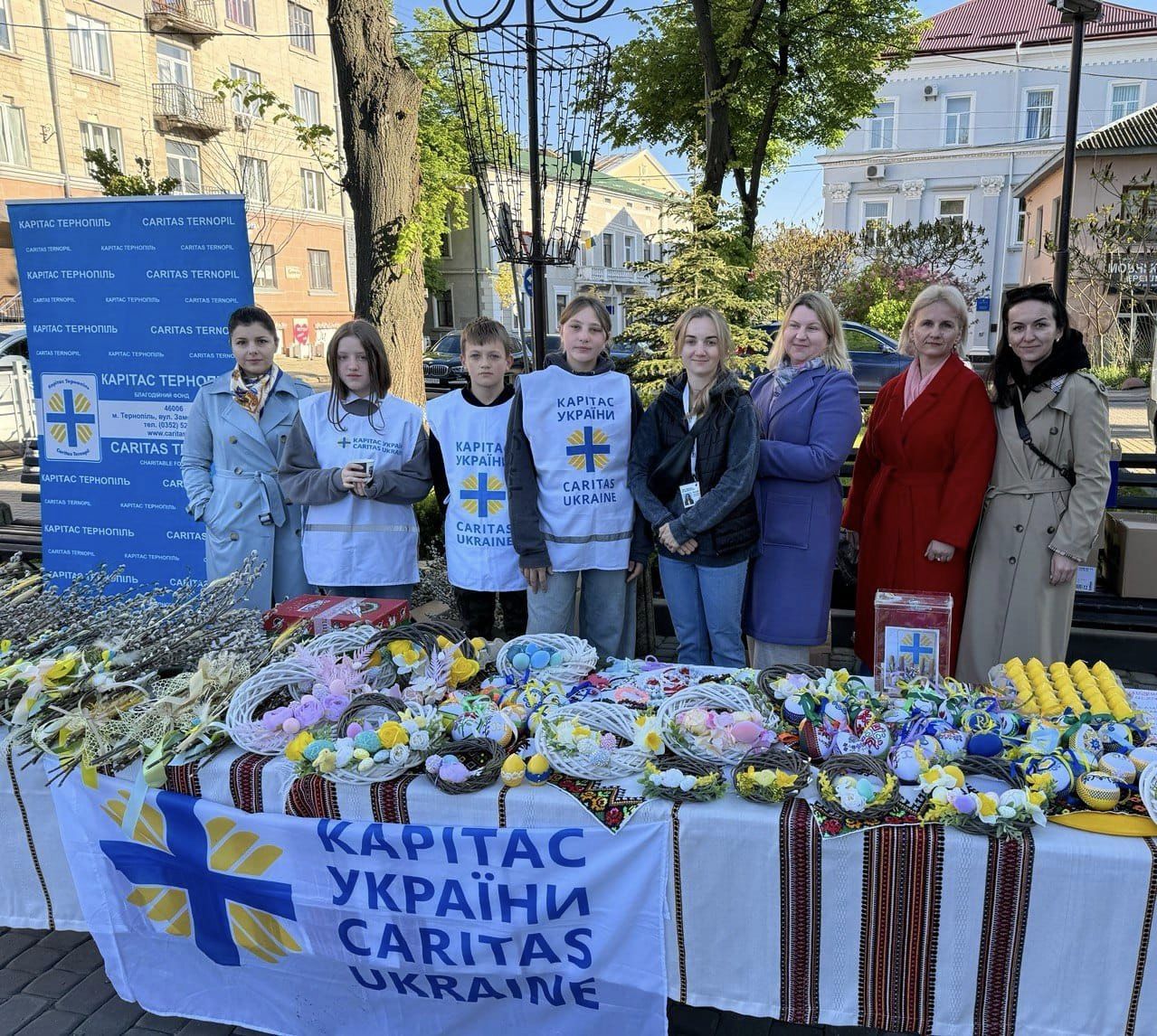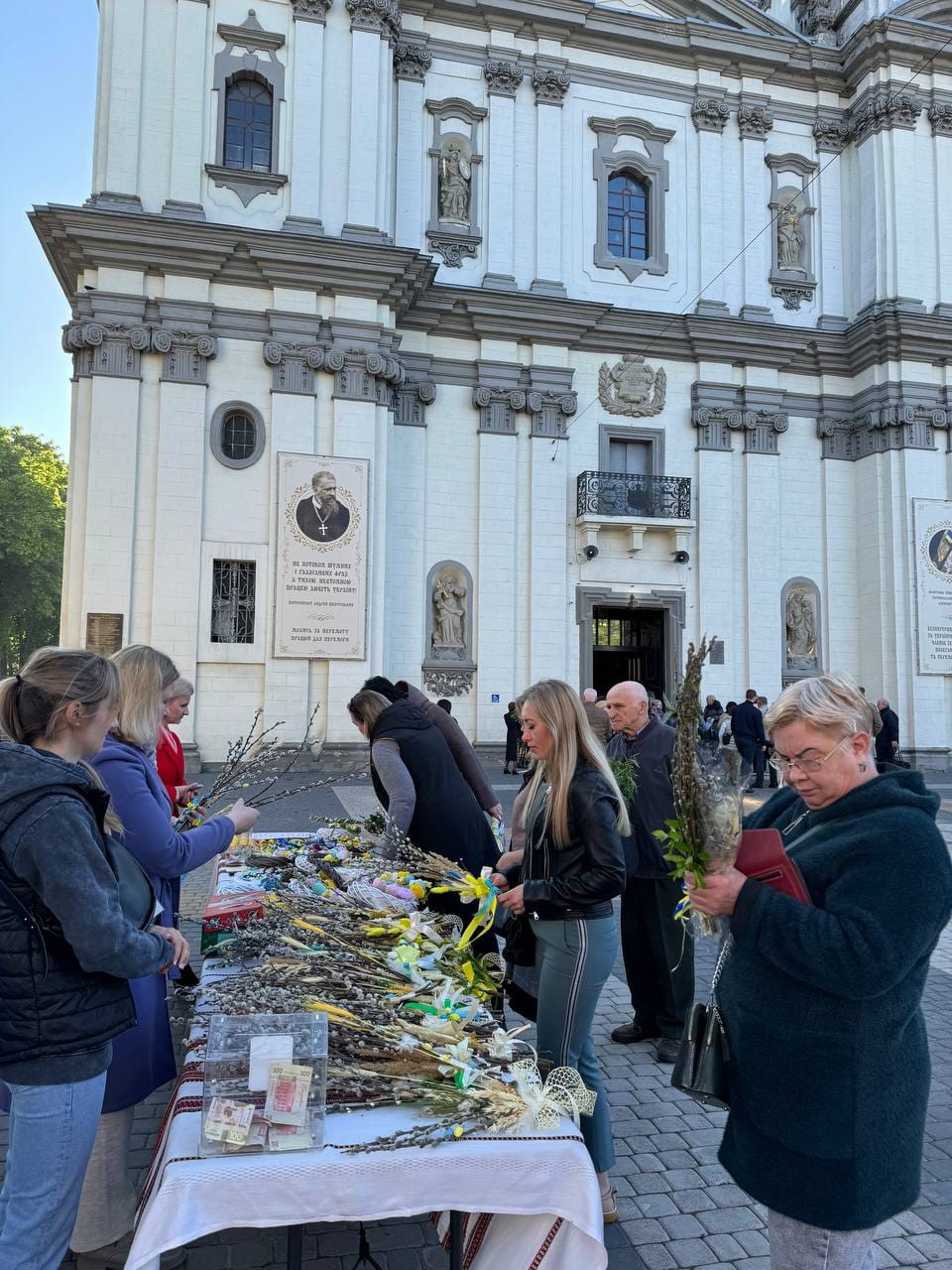 Тож біля Архикатедральний Собор НЗПБ - Тернопіль та ПАРАФІЯ ПОЛОЖЕННЯ ЧЕСНОЇ РИЗИ ПРЕСВЯТОЇ БОГОРОДИЦІ УГКЦ М.ТЕРНОПІЛЬ можна було за благодійну пожертву придбати вербу та Великодні вироби.