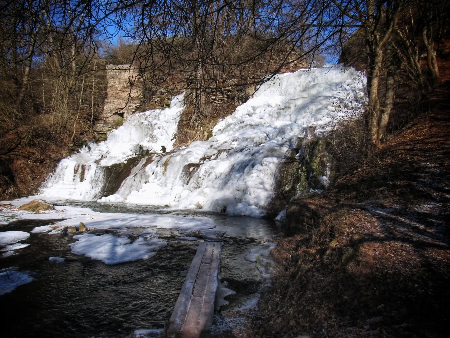 Фото і відео Джуринського водоспаду, вкритого кригою тепер, опублікували в Національному природному парку «Дністровський каньйон».