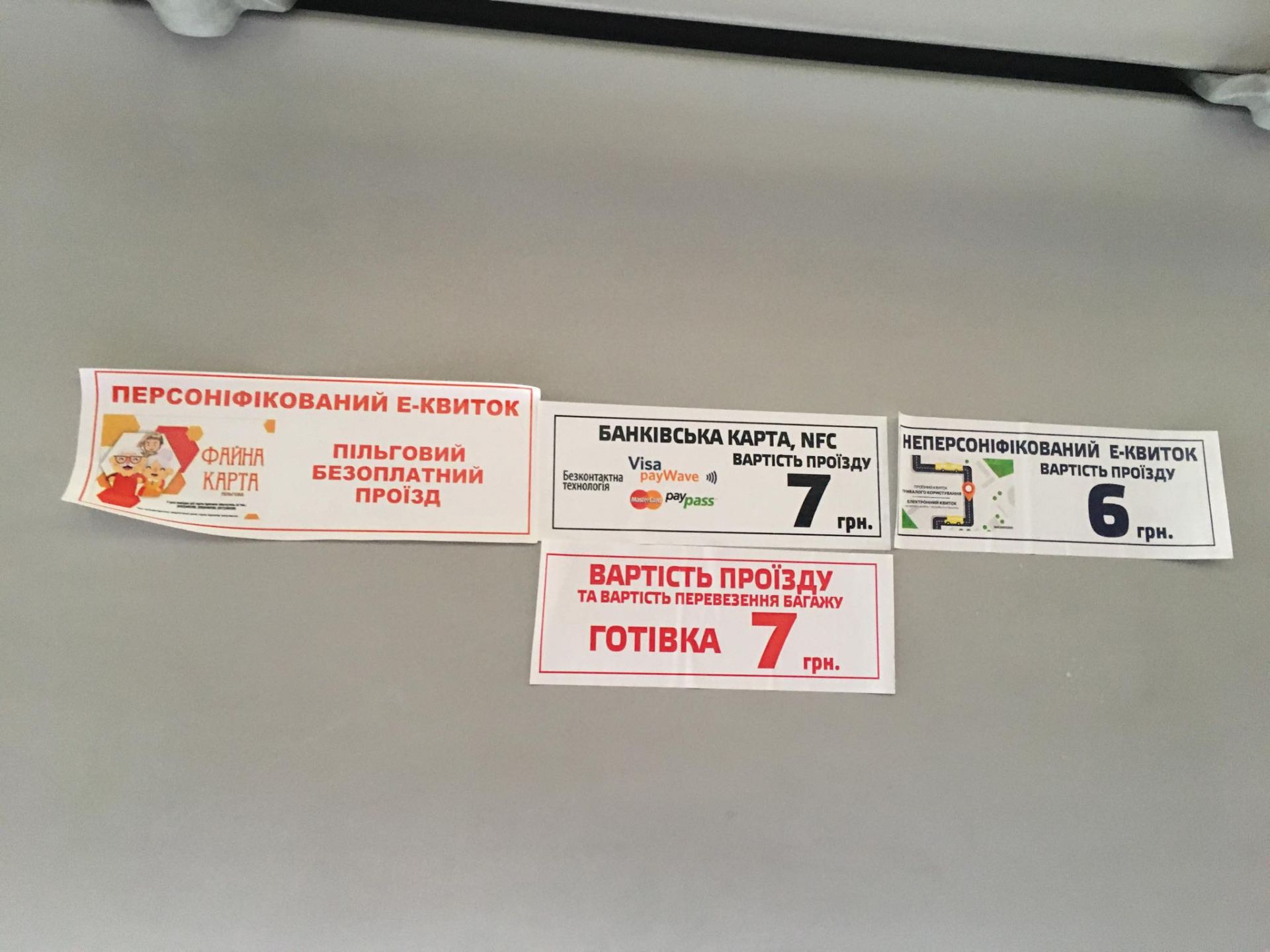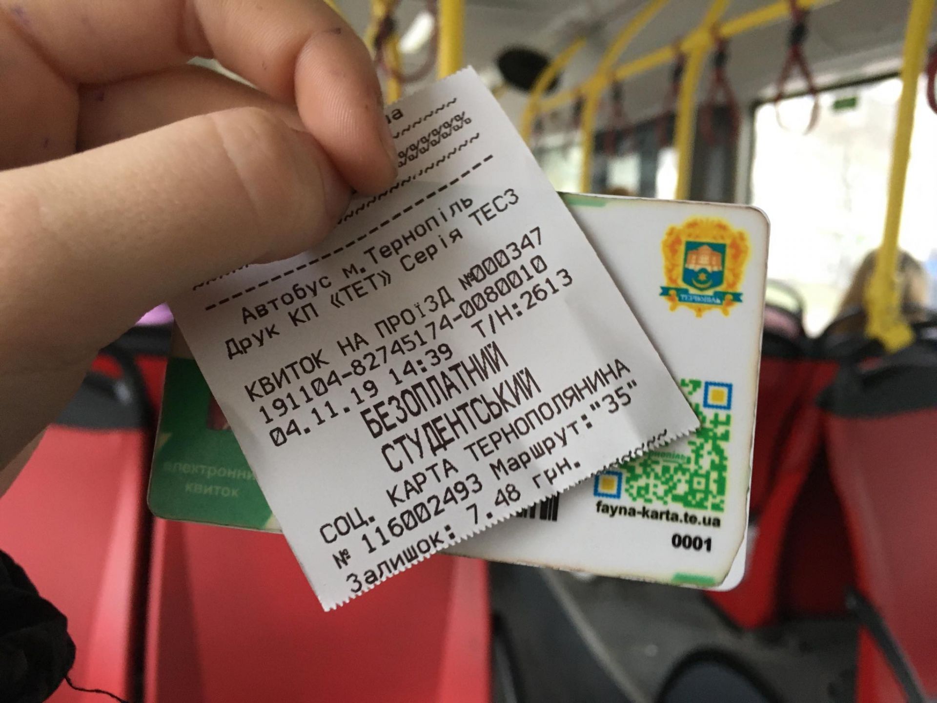 Автобуси великі, місткістю понад 80 пасажирів. О 14:35 пасажирів у ньому майже не було, лише кілька людей. Зазначимо, учні та студенти тернопільських університетів, а також пільговики мають можливість безкоштовно їздити у цьому автобусі. Всі інші платять 7 гривень – готівкою, і 6 гривень, якщо розраховуються "Карткою тернополянина".
