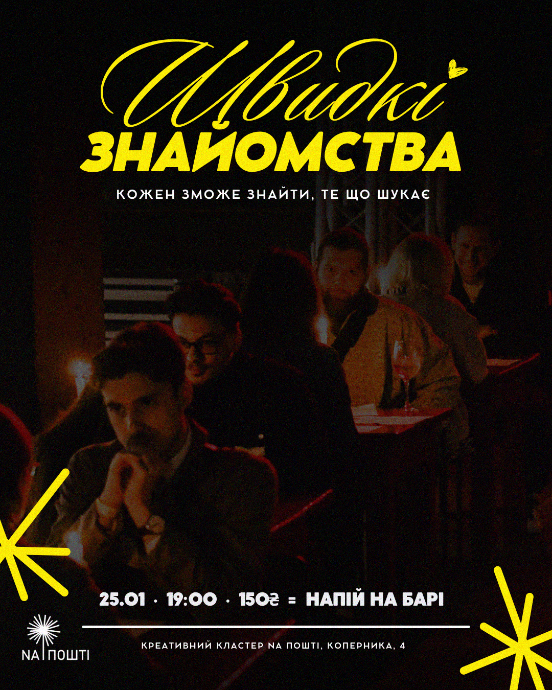 — Шукаєш друга чи подругу, кохання, або, можливо, партнера для бізнесу? Тут кожен знайде саме те, що шукає. Формат швидких знайомств допоможе легко та невимушено поспілкуватися з різними людьми, знайти спільні інтереси й відчути справжній контакт, — зазначають організатори.