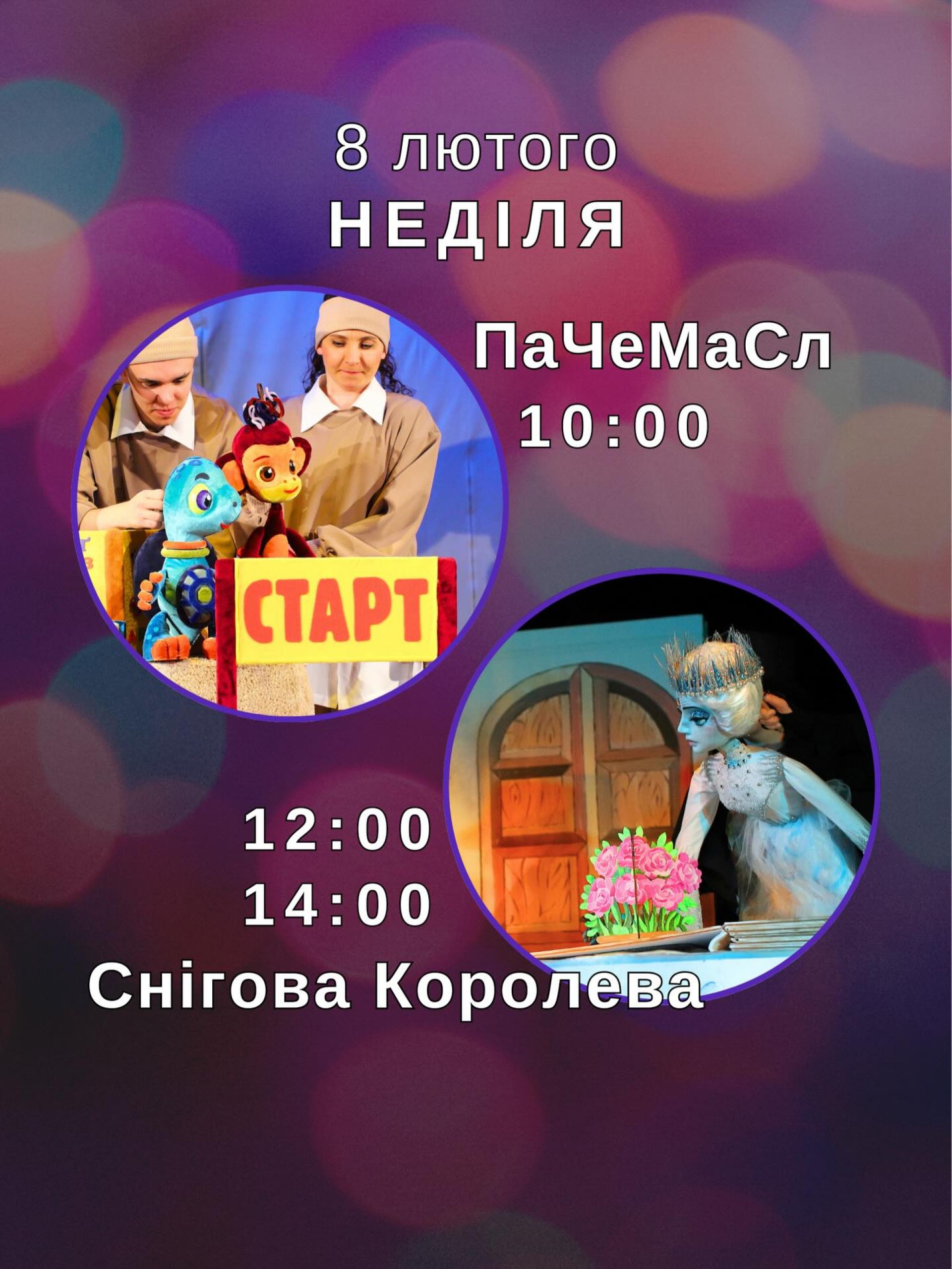 У НЕДІЛЮ, 8 лютого, до вашої уваги дві різні вистави: