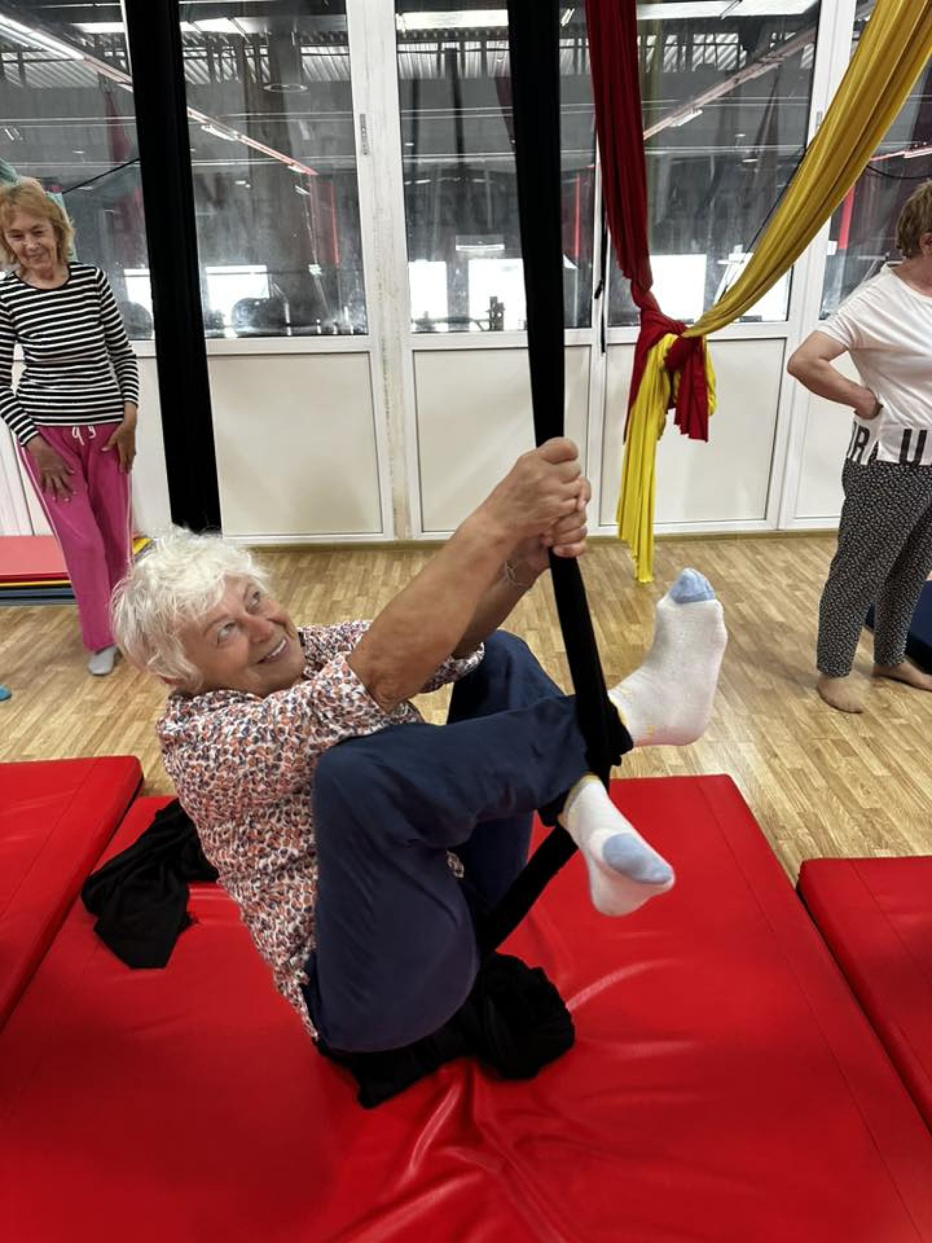 — Коли пенсія — не вирок, а розгін перед польотом. У повітрі літали не тільки стрічки, а й... наші неймовірні пані за 60"! (найстарішій учасниці 81. Так-так, не жартуємо — вони вперше в житті спробували повітряну гімнастику, і знаєте що? Літали краще, ніж Wi-Fi на дачі! Такого ми ще не бачили — хвилювання, щастя в очах, обережні, але впевнені рухи, сміх, який долинав з висоти... І найголовніше — впевненість, що ніколи не пізно жити на повну. Далі більше … Не пропустіть!) — йдеться у повідомленні.