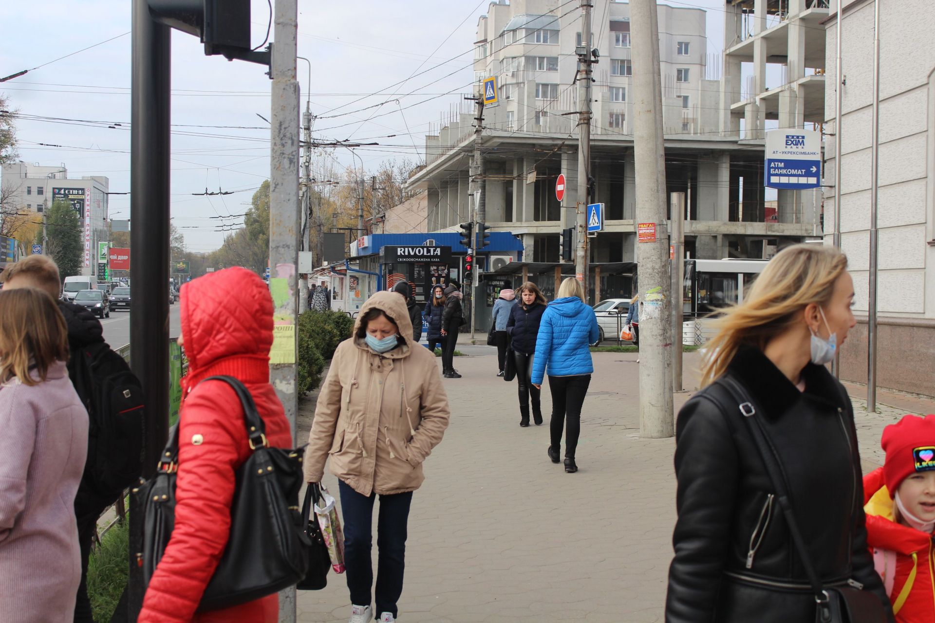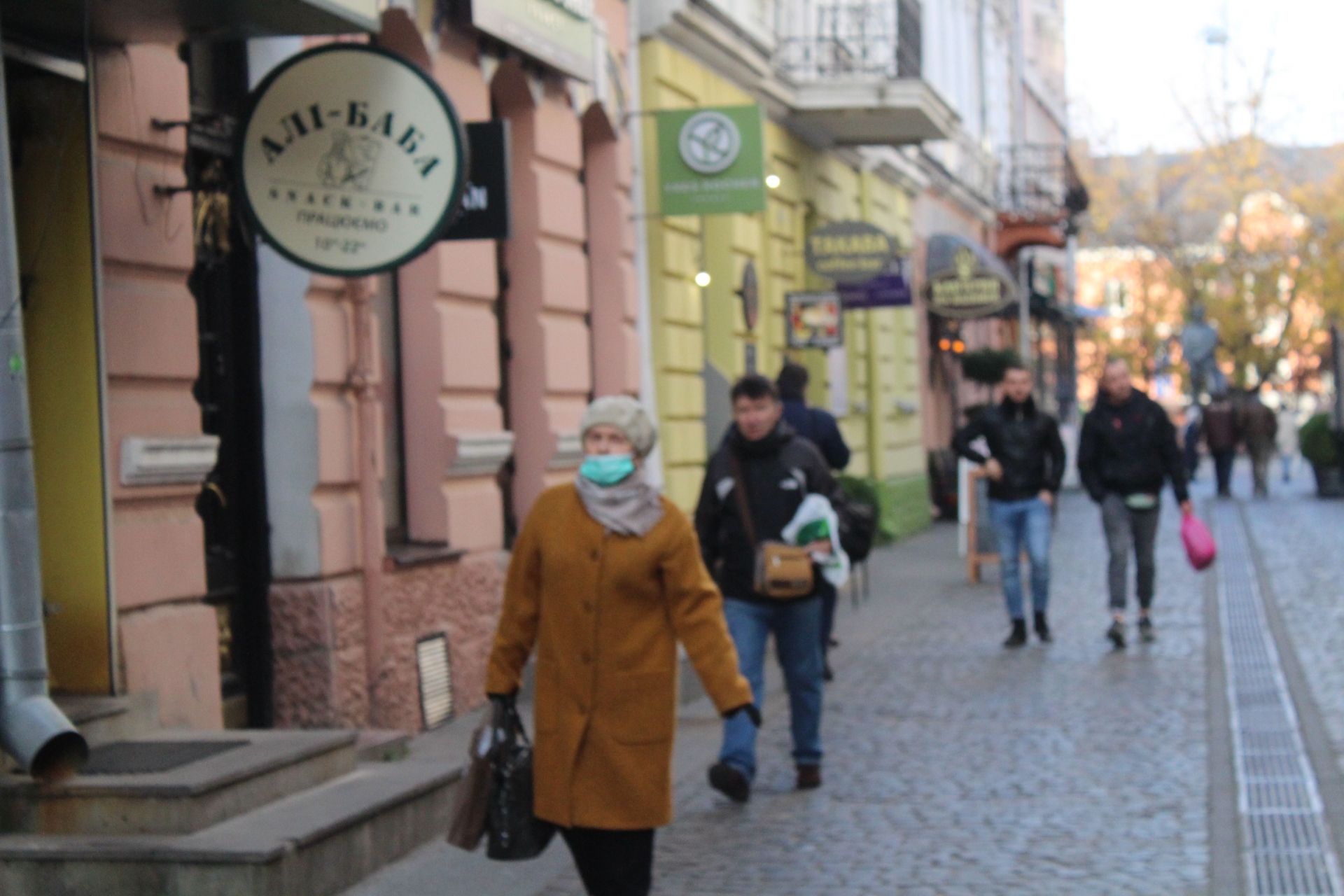 На вулицях все частіше люди одягають маски. Багато людей приспускають їх і одягають лише тоді, коли заходять у приміщення.