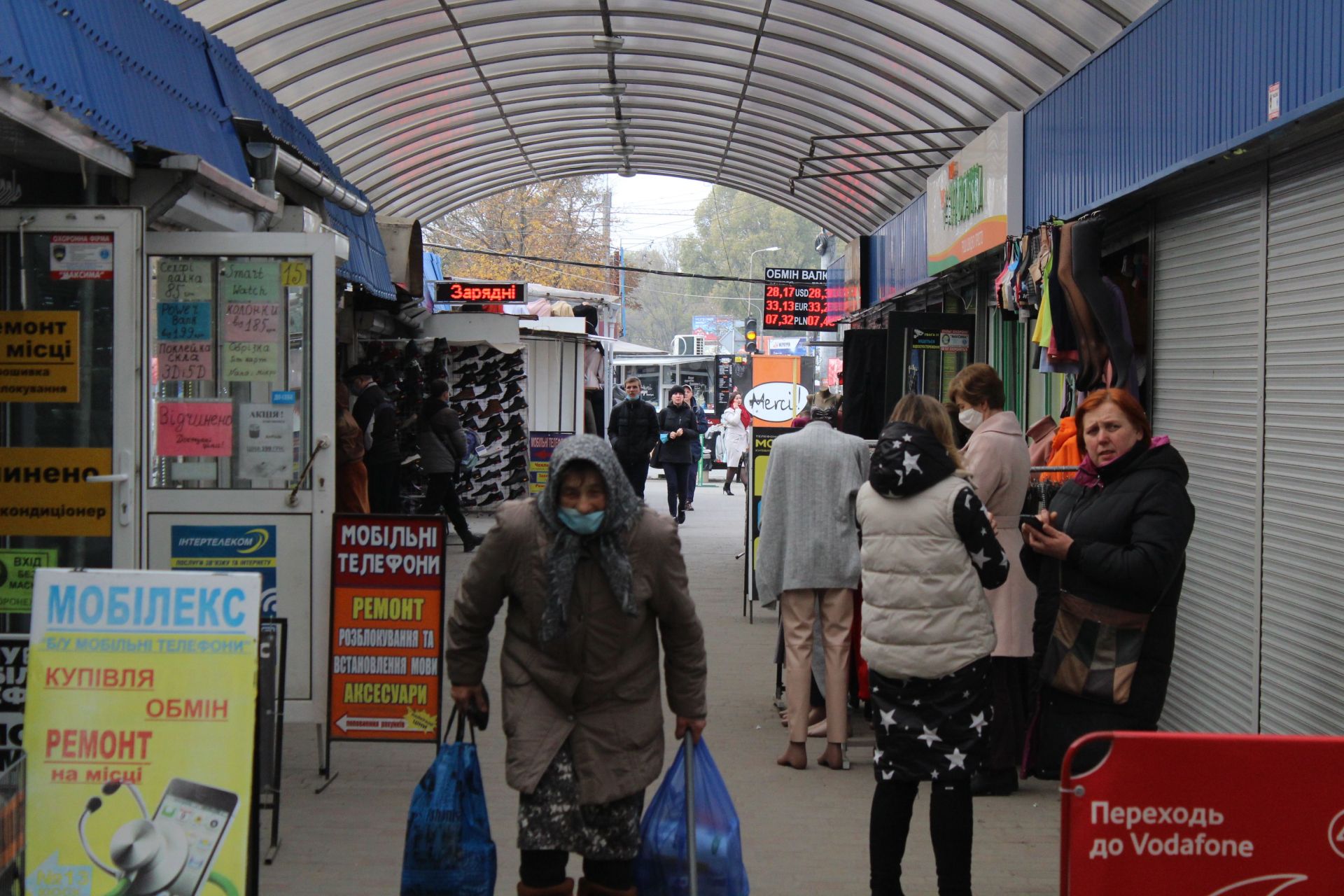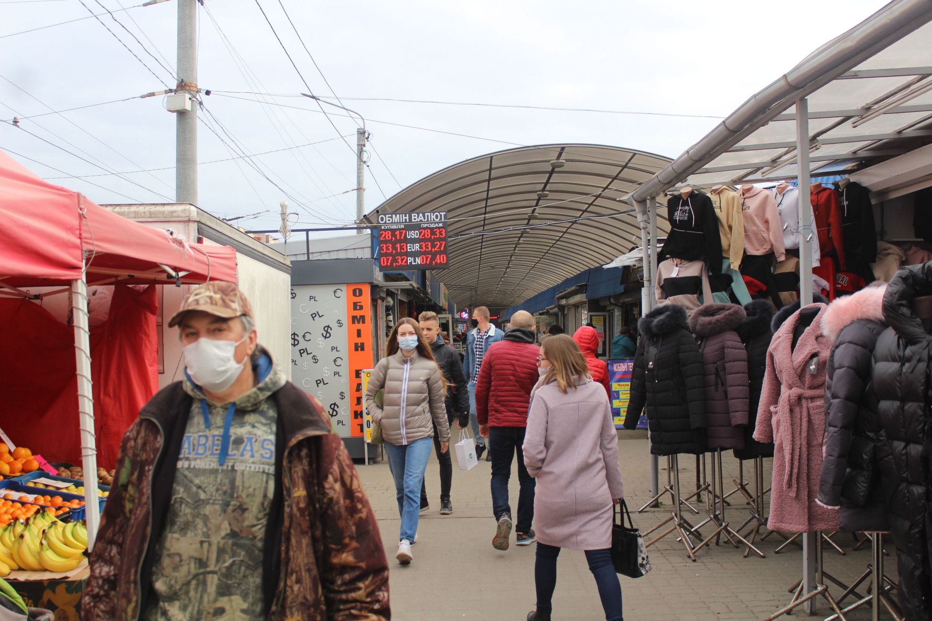 На території ринку людей в масках побільшало, хоча більшість все ж ігнорує це правило, або одягає її неправильно.