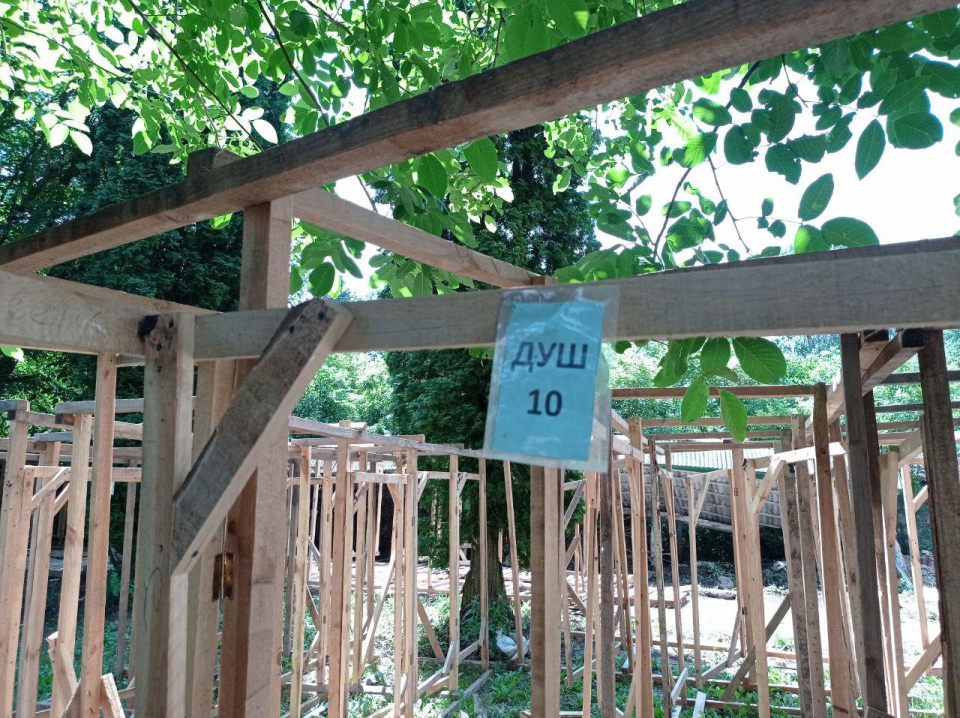 Робітники працюють не лише над декораціями. Вже збирають душові кабіни. Їх буде 200. Для тих, хто купив абонемент на проживання у наметовому містечку, відвідування душу безкоштовне. Для інших послуга платна – 20 гривень – холодна вода та 40 гривень – душ з гарячою водою.