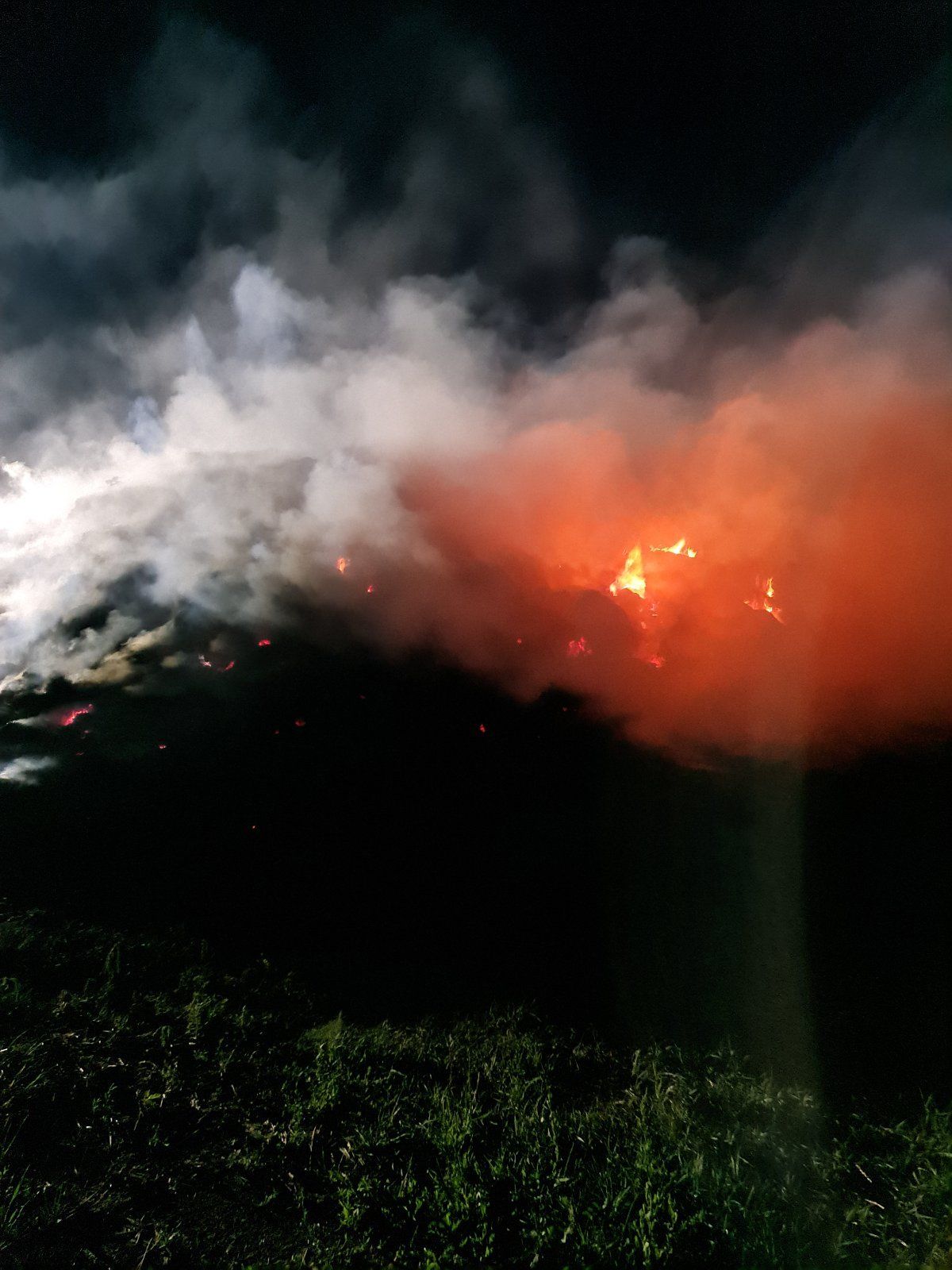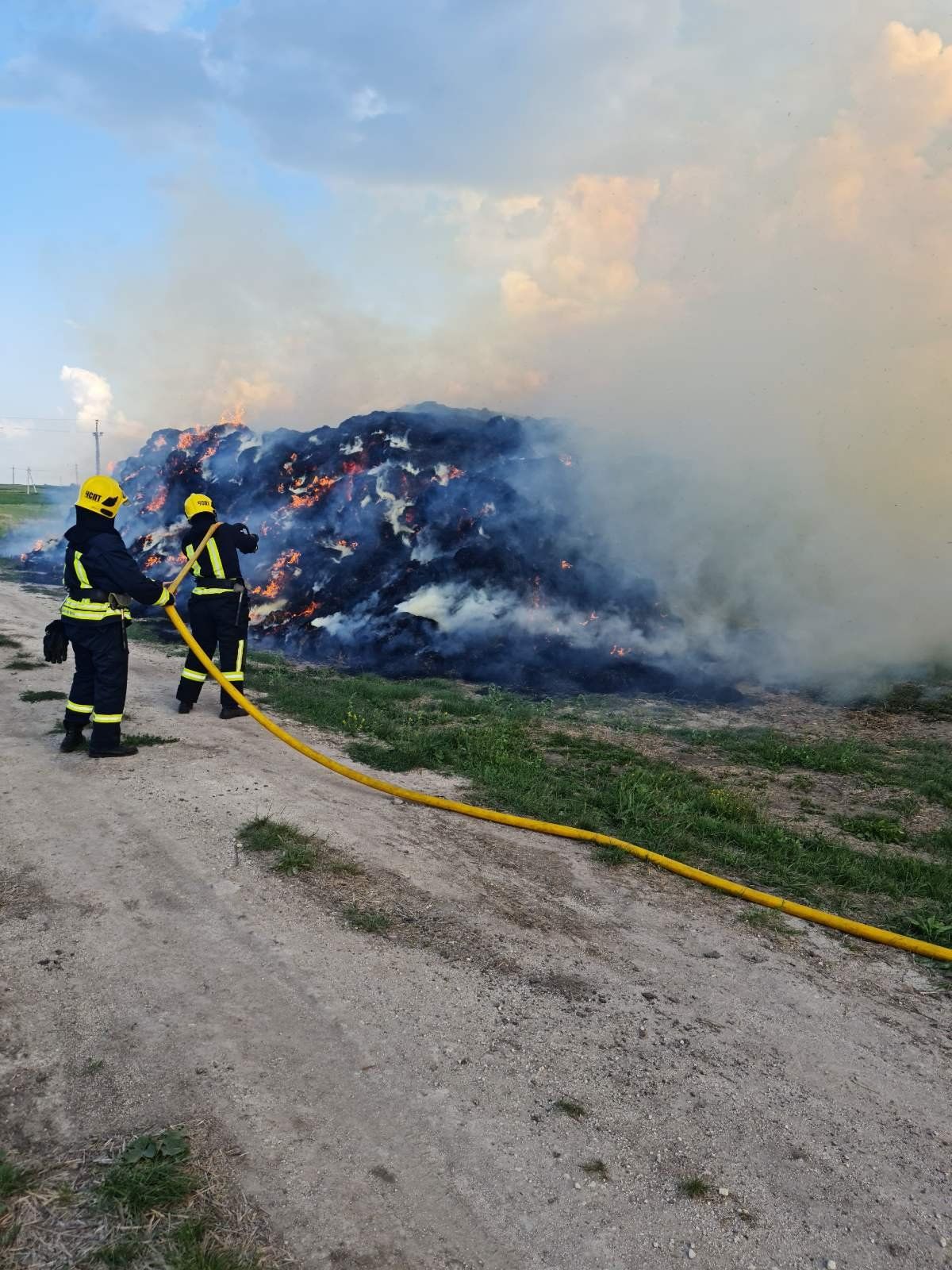 На відкритій території площею 100 м.кв., горіли складовані тюки соломи. Причина виникнення пожежі та матеріальні збитки встановлюються. Пожежу ліквідовано.