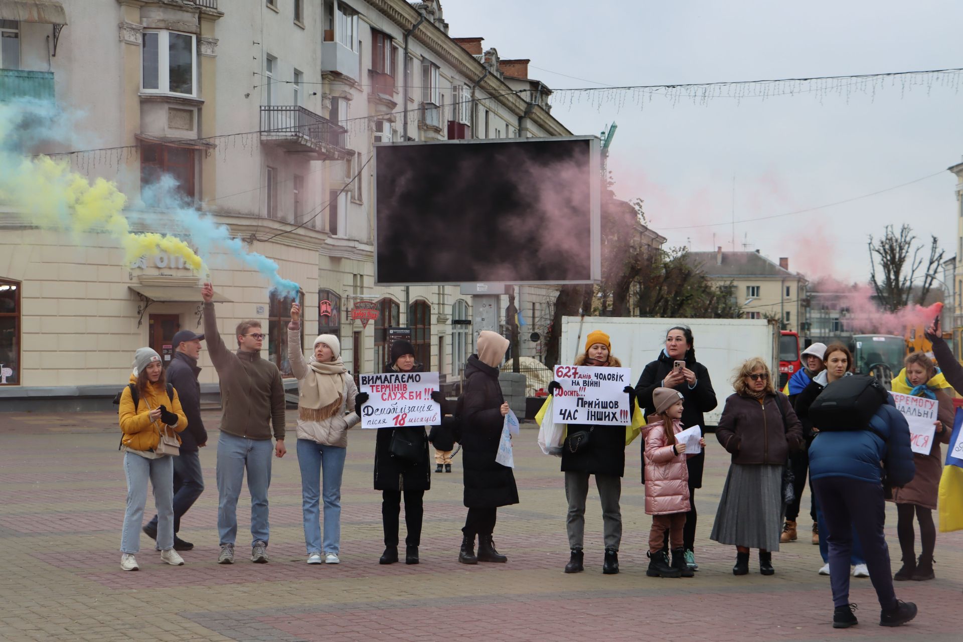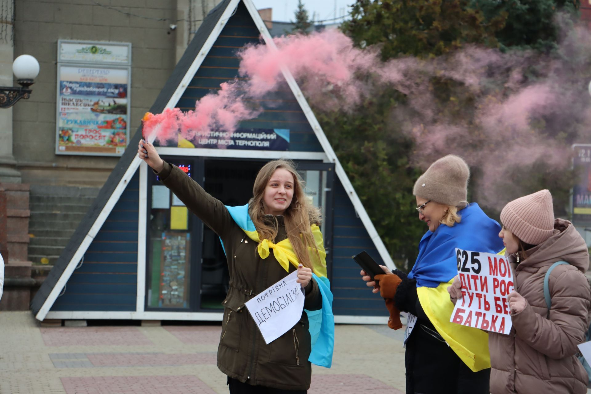 На Театральному майдані у Тернополі 12 листопада організували мирний пікет. Родини захисників з Тернопільщини приєднались до Всеукраїнської акції в підтримку демобілізації наших бійців за власним бажанням після 18 місяців служби. Акція розпочалася орієнтовно о 12-й годині.