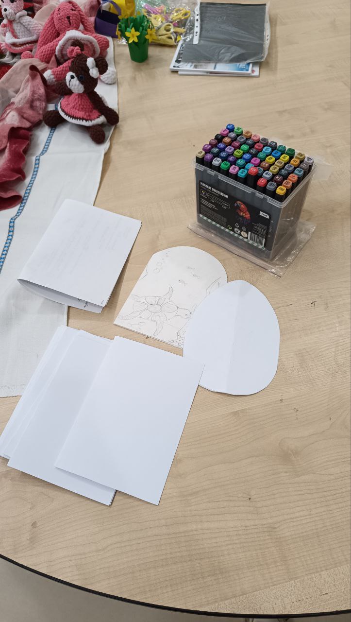 Також тут проводять майстер-клас — разом із дітками виготовляють великодні листівки у вигляді паски і писанки. Малеча розмальовує їх і пише всередині побажання, які потім передають воїнам на фронт.