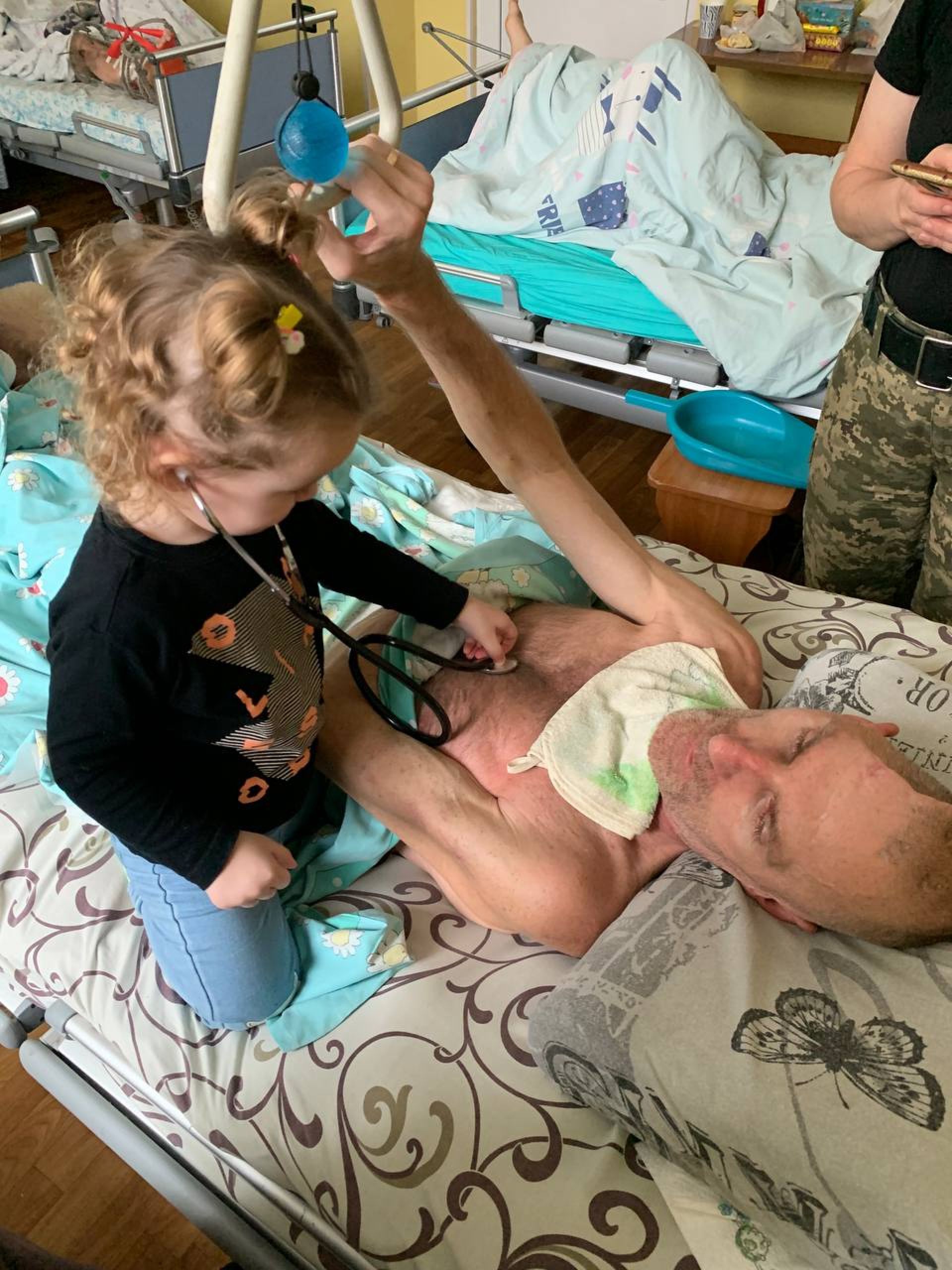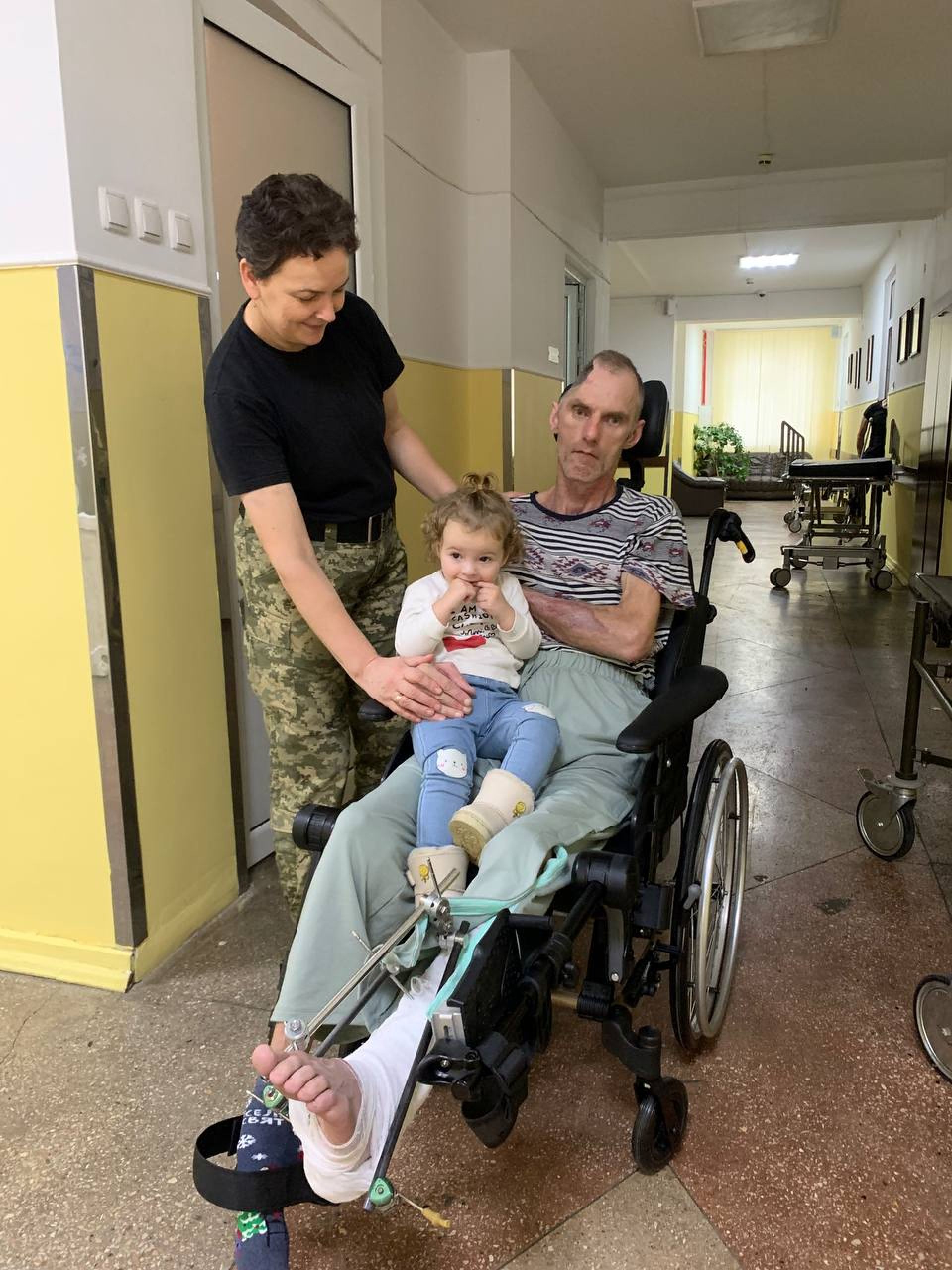 — Він абсолютно все розуміє, — запевняє жінка. — У Вінниці перед операцією з нього зняли обручку і віддали мені. Коли отямився, я показала обручку, поклавши її на долоню. А він простягнув руку, аби одягнула… І поцілував. Все пам’ятає, все розуміє, просто закутий у нерухоме тіло як заручник. Тепер пише навіть з розділовими знаками. Страшенно тішився, коли побачив внучку. Реагує на фото — вживу чи на телефоні, впізнає людей. Тексти, на жаль, не може читати. Але ми боремося далі.