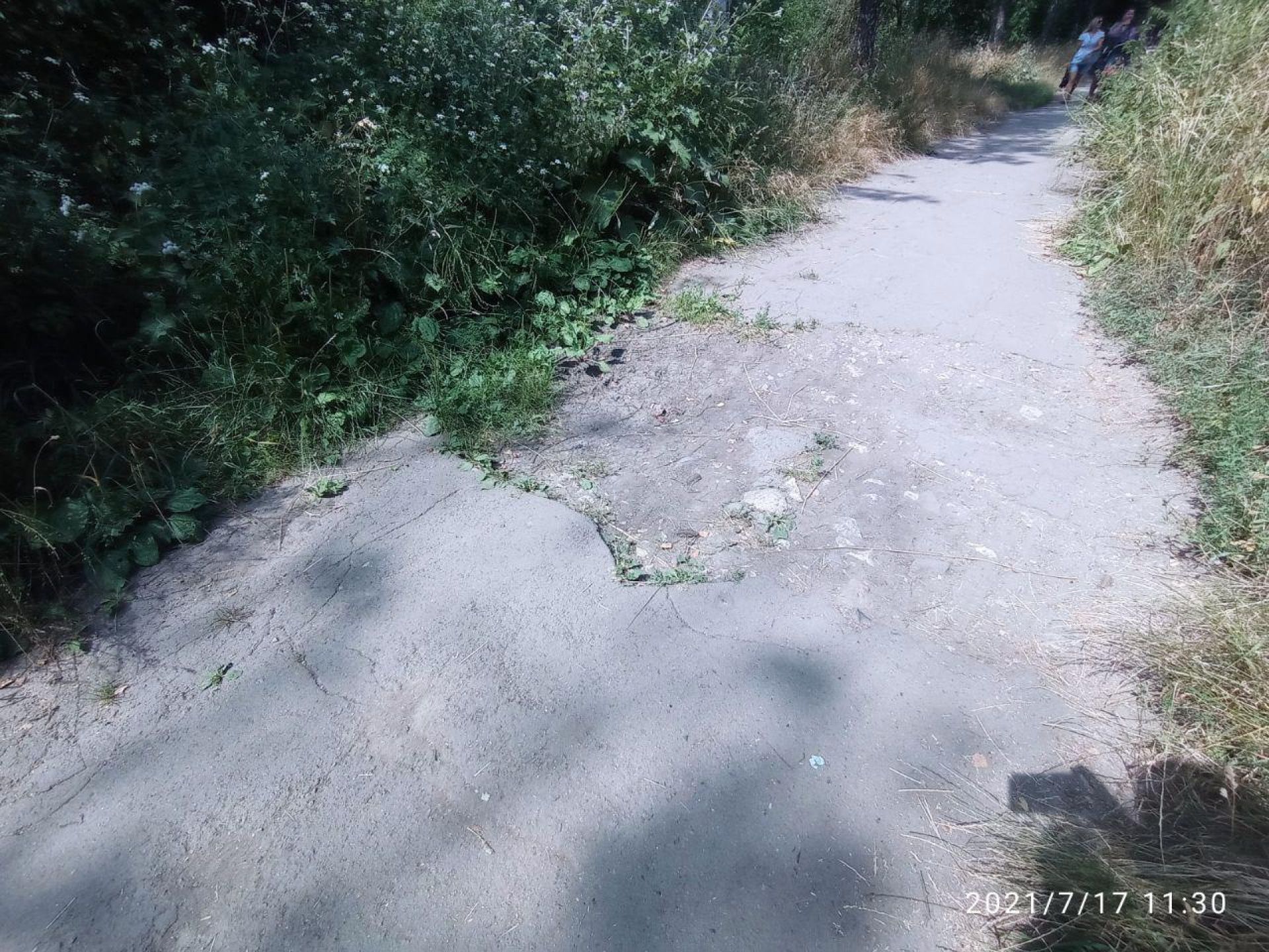 Як помітив журналіст «20 хвилин», там дійсно давно не косили траву. У деяких місцях бур'яни вже вище голови перехожих. Поміж кущів та дерев валяється сміття. Асфальтові доріжки поміж деревами в ямах. Місцеві кажуть – алею не ремонтували з того часу, як вона там з’явилася.