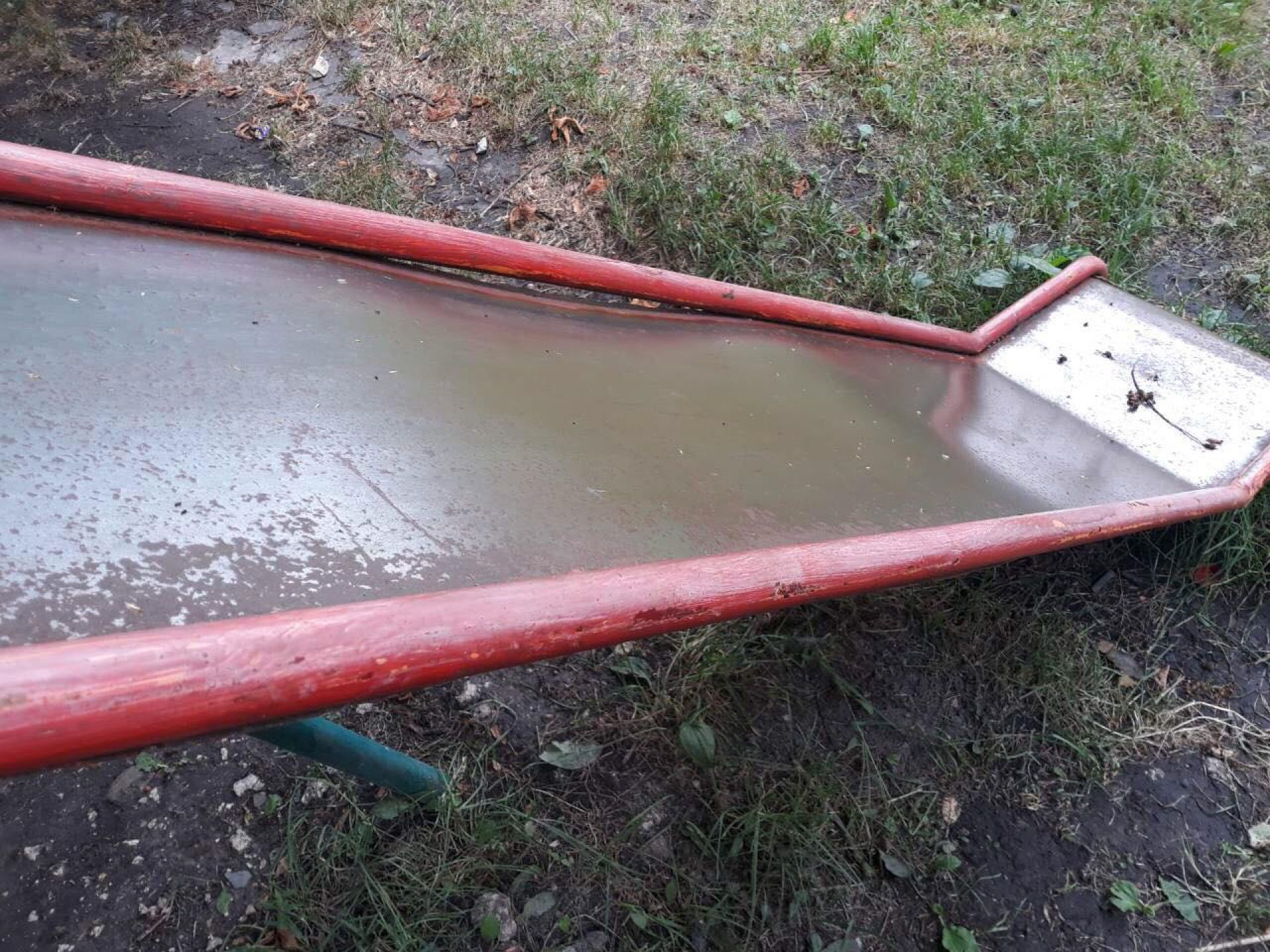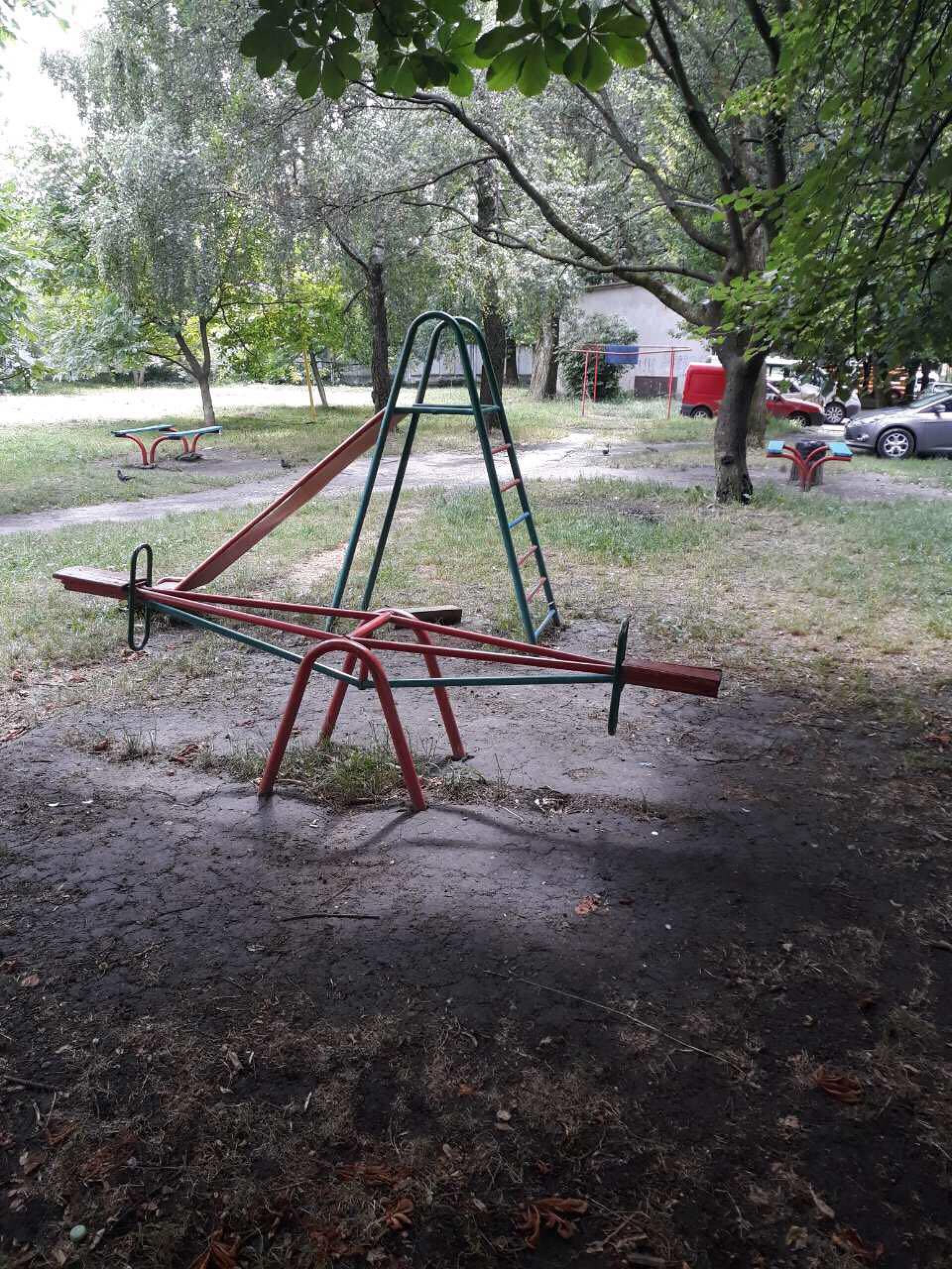 Житель Київської, 1 каже, що гойдалки були в хорошому технічному стані, справні та пофарбовані. А голова ОСББ підтверджує, що вони забрали із тієї території, яка тепер належить їм, три гойдалки, але, каже, вони віджили вже своє.