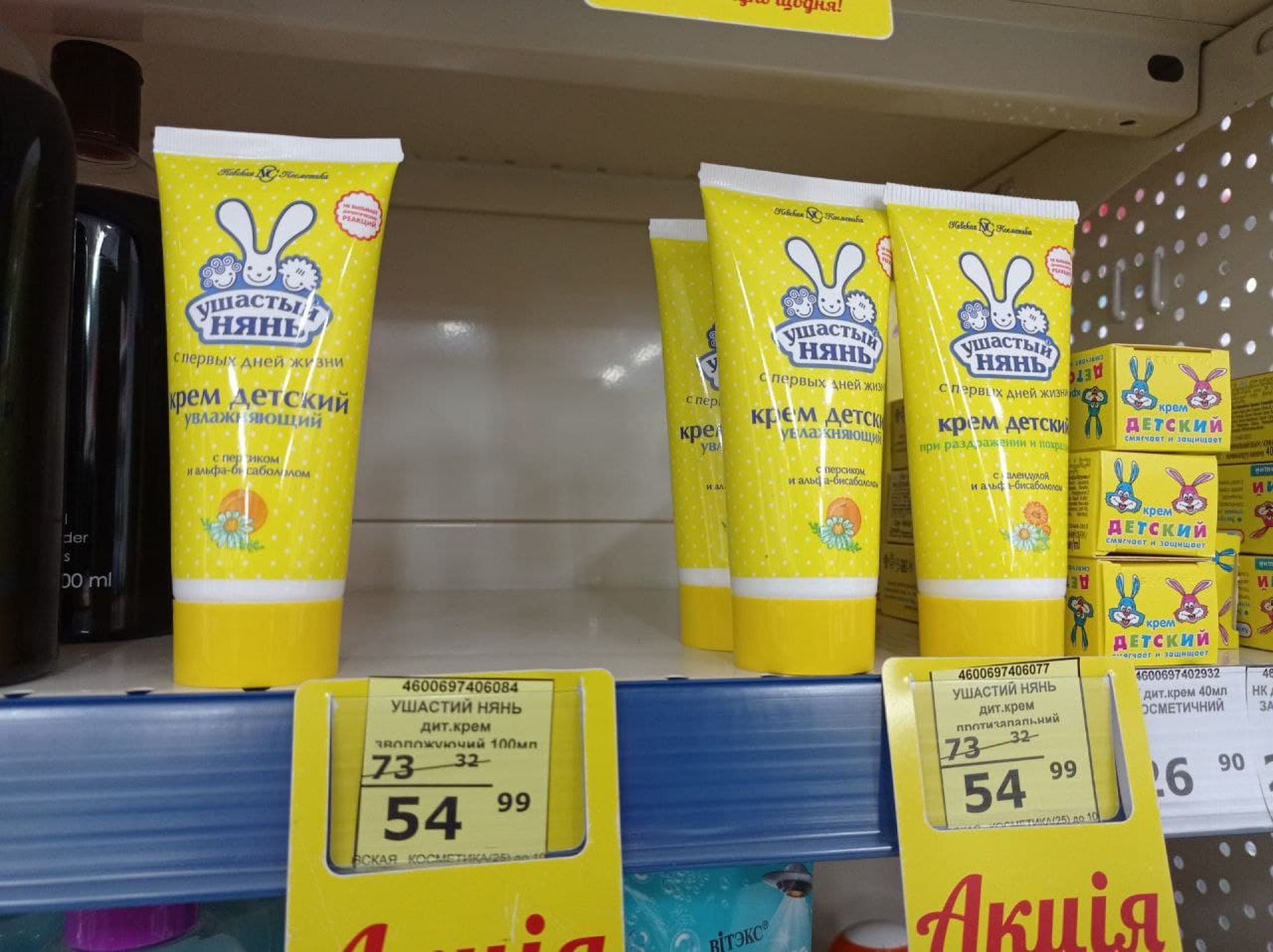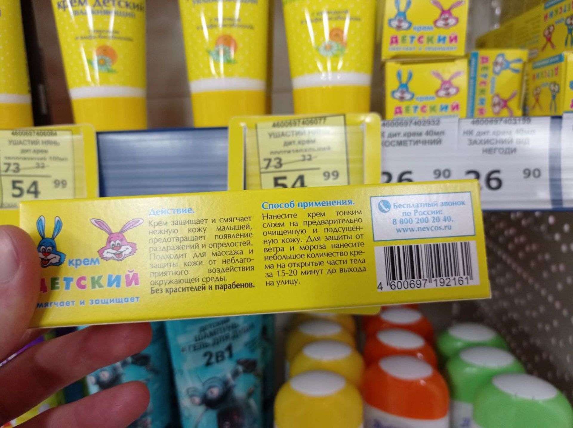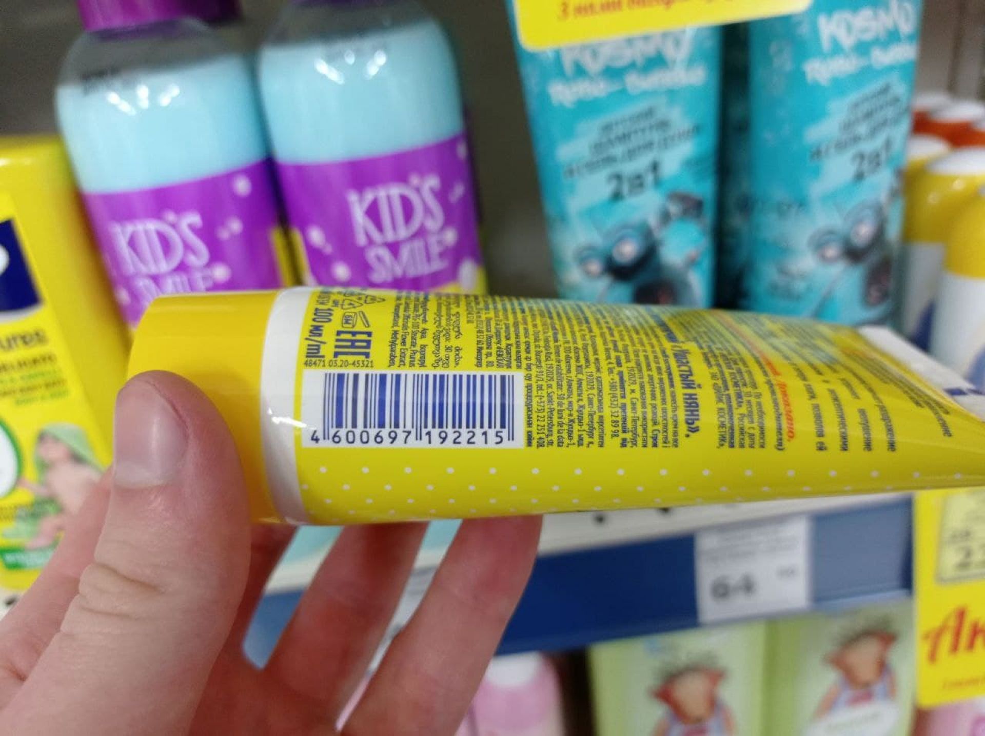 Багато дитячих засобів гігієни з Росії ми помітили в магазині «Щодня». Це продукція російської компанії «Невская косметика». Деякі товари від цього виробника виготовлені в Україні, про що свідчить інформація на етикетці та штрих-код. Також деяка продукція «Ушастый нянь» від «Невской косметики» приїхала з Росії. Деякі товари цього бренду виготовили в Україні. Були і зубні щітки Colgate з РФ.