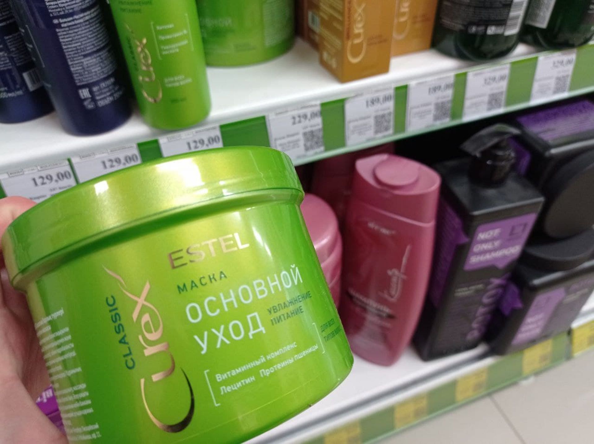 Такі ж смужки для епіляції з Росії були і в магазині Eva. На одній з полиць продукція ESTEL для догляду за волоссям з Росії.