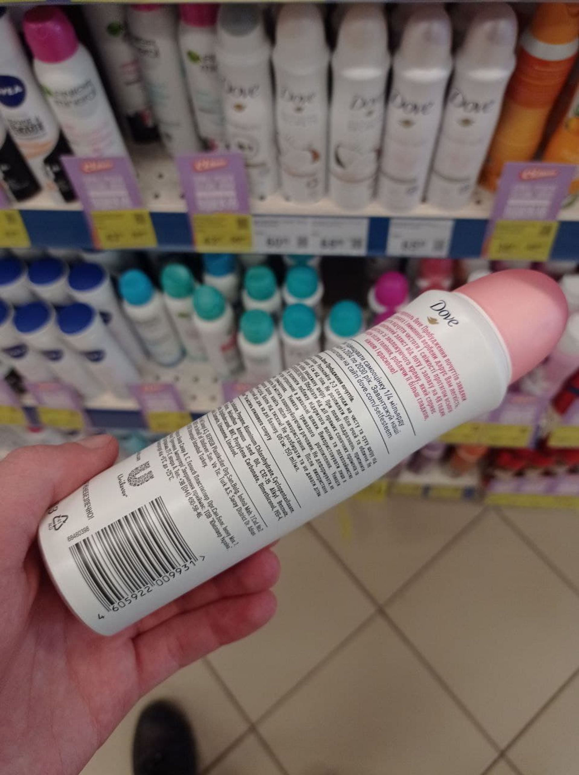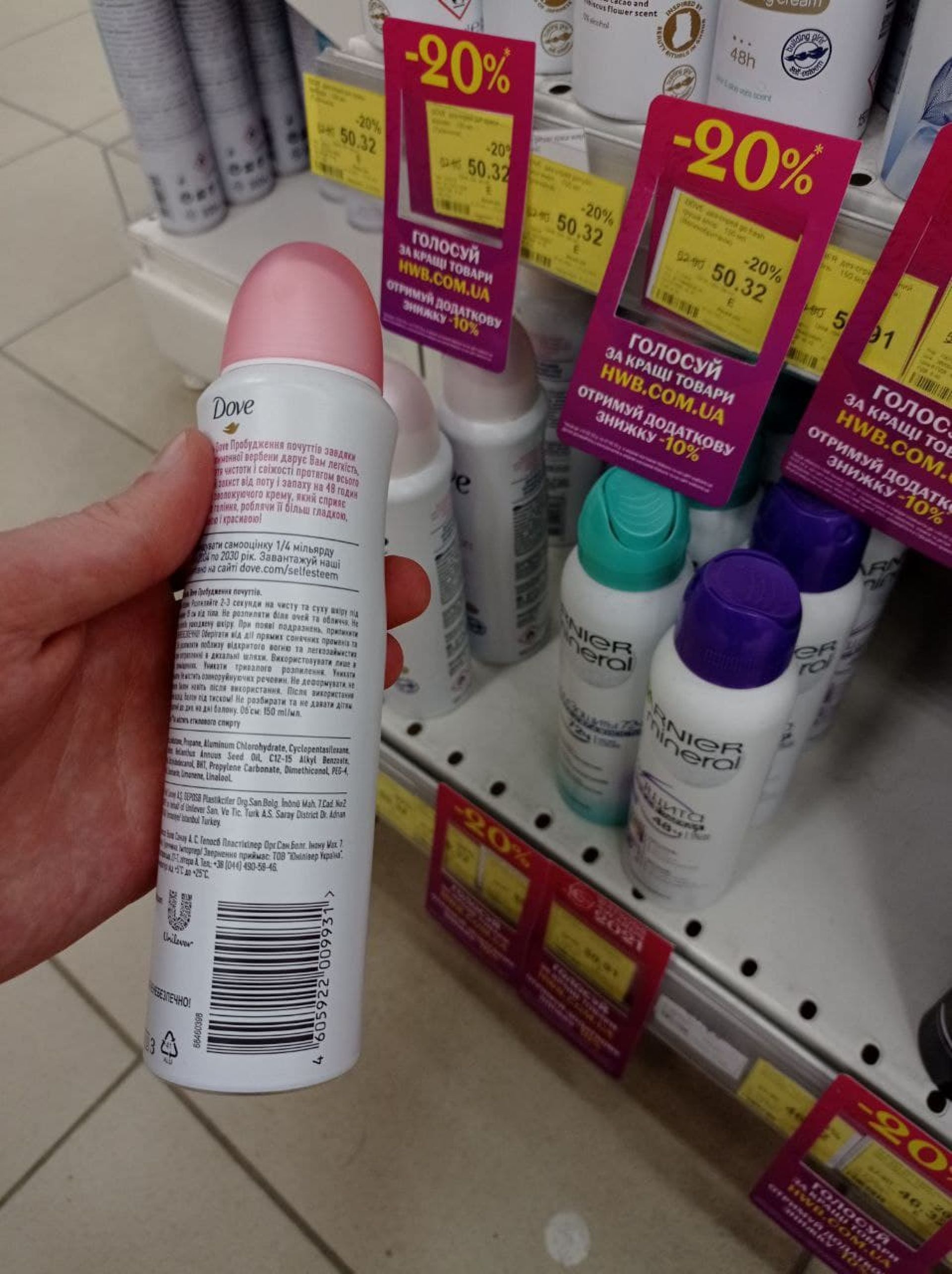 У магазині Watsons ми знайшли один з видів дезодоранту Dove та воскові смужки Veet з Росії.