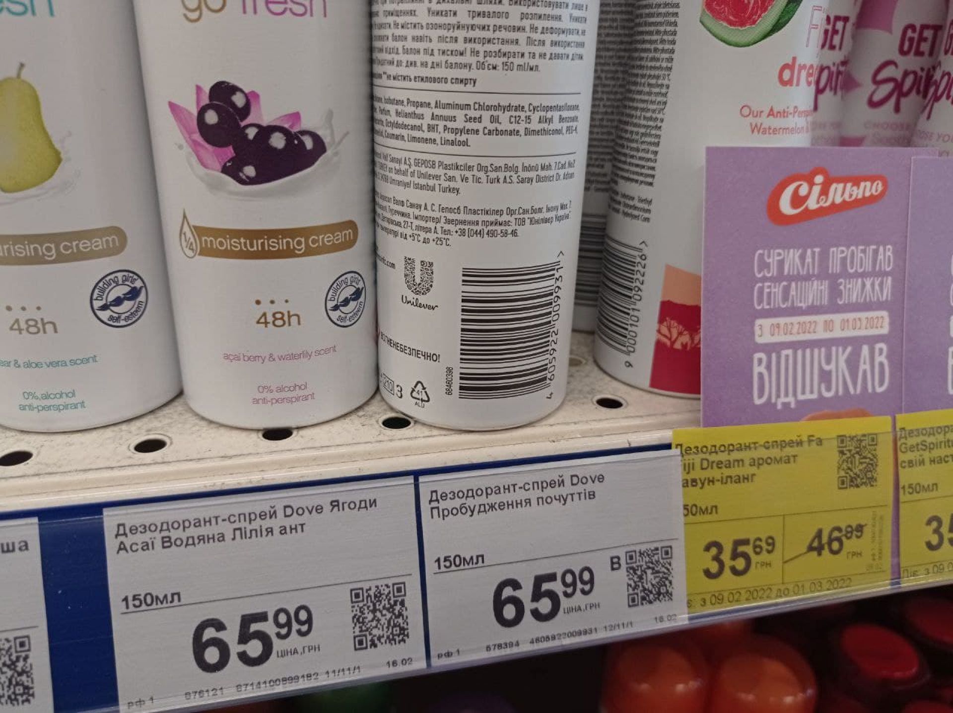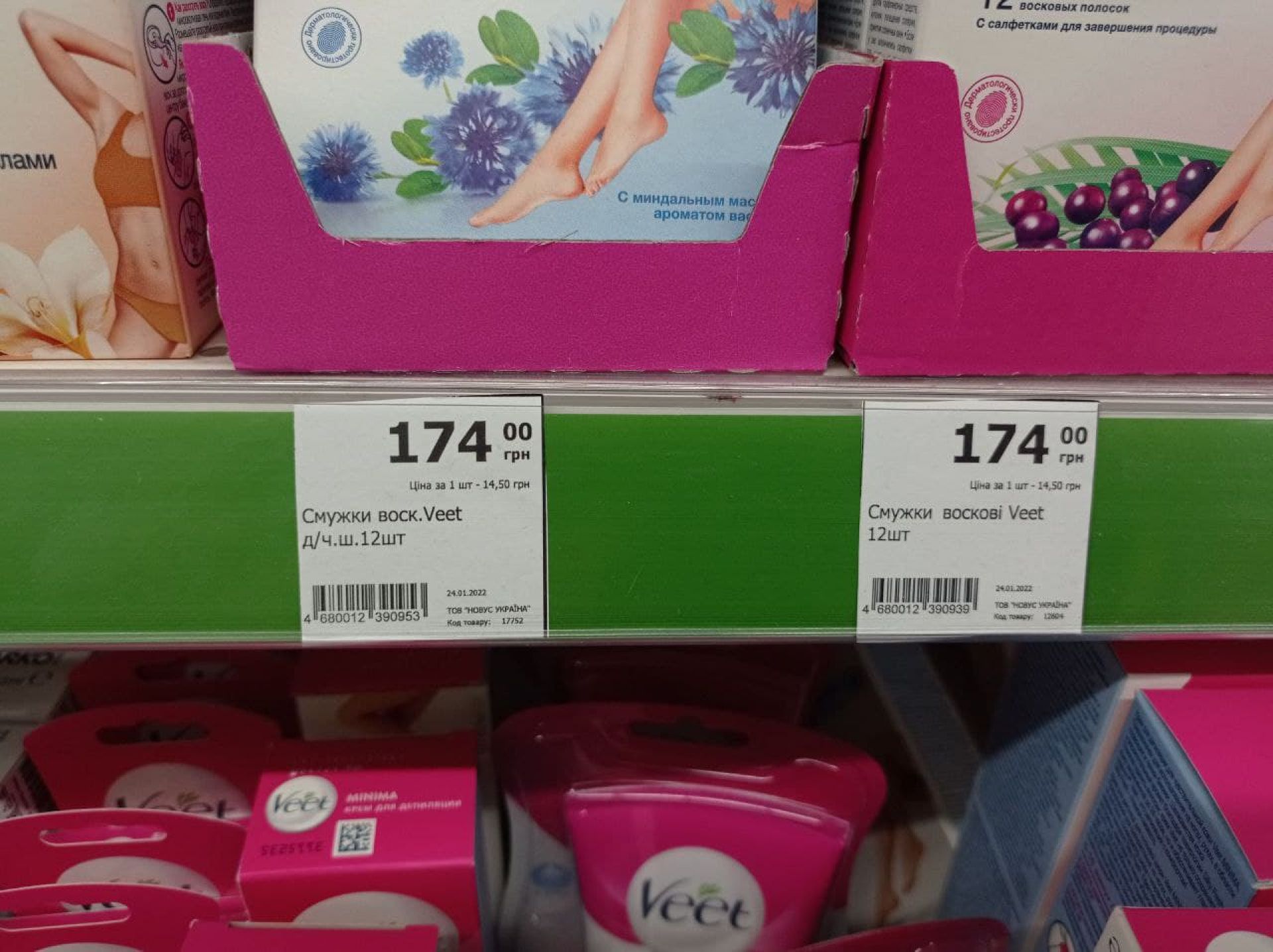 У «Сільпо» ми помітили один вид дезодоранту Dove з РФ. Всі інші види дезодорантів цієї фірми косметики – з Нідерландів. Були і російські смужки для епіляції Veet.