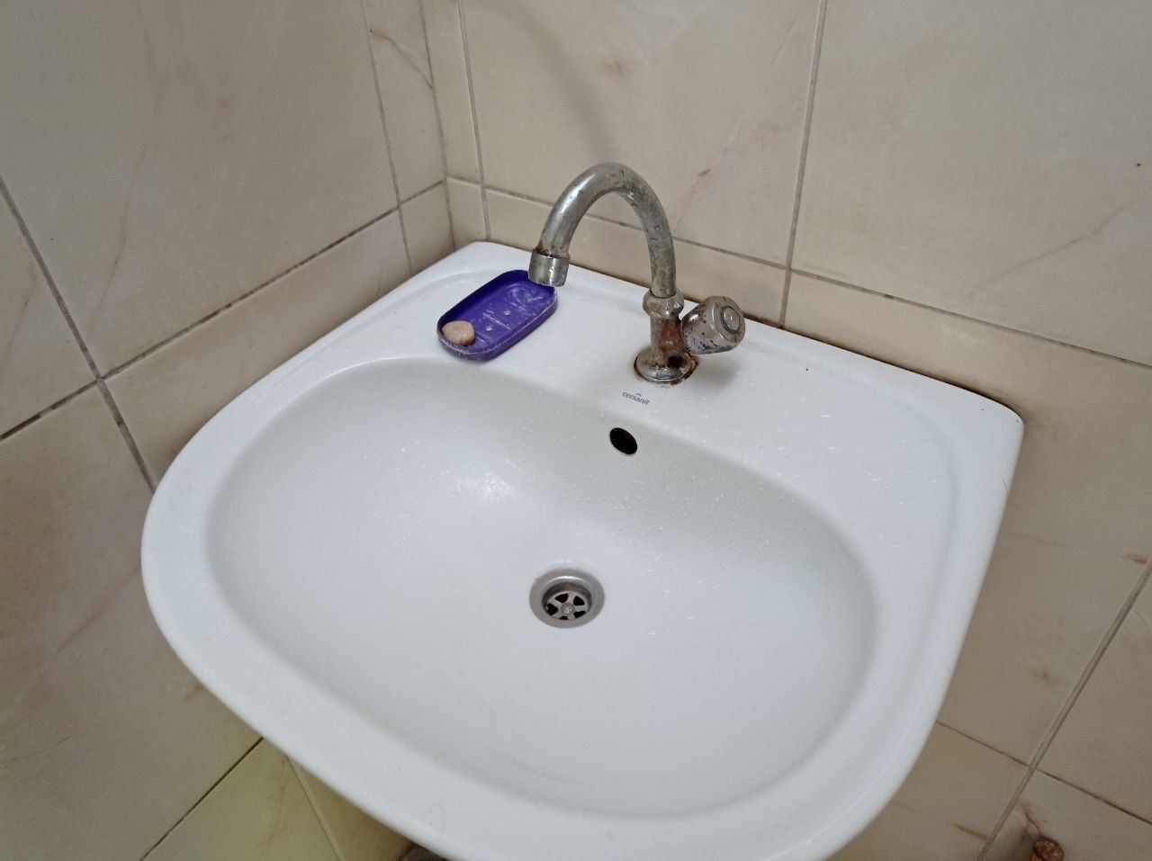 Змив працює, є холодна вода, щоб помити руки. А от дозатора з рідким милом бракує – є лише мильниця з залишками, які схожі на господарське мило.