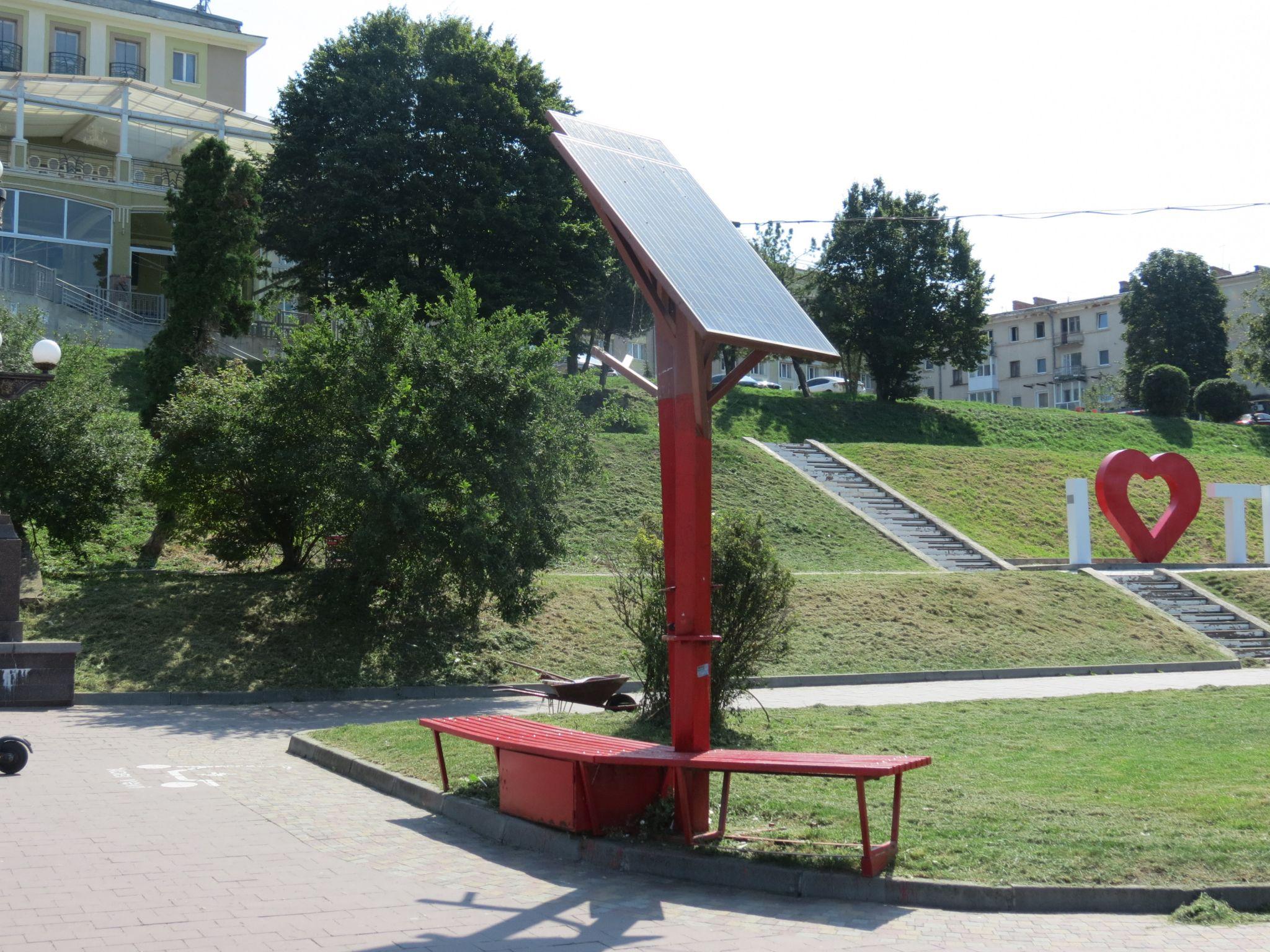 Можна безкоштовно підзарядити смартфон біля сонячних батарей.