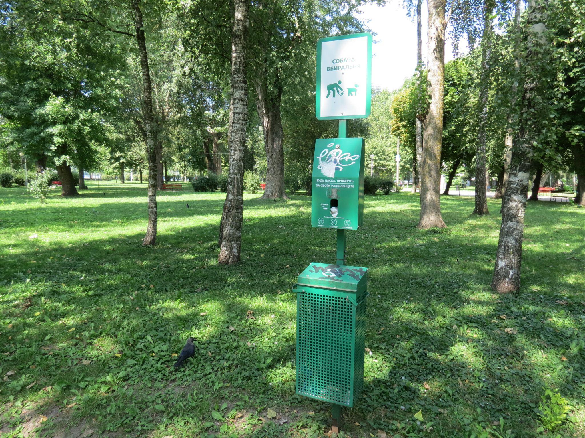 Ми побачили кілька станцій для прибирання за тваринами. Однак в них немає спеціальних пакетиків, натомість туди запхали сміття.