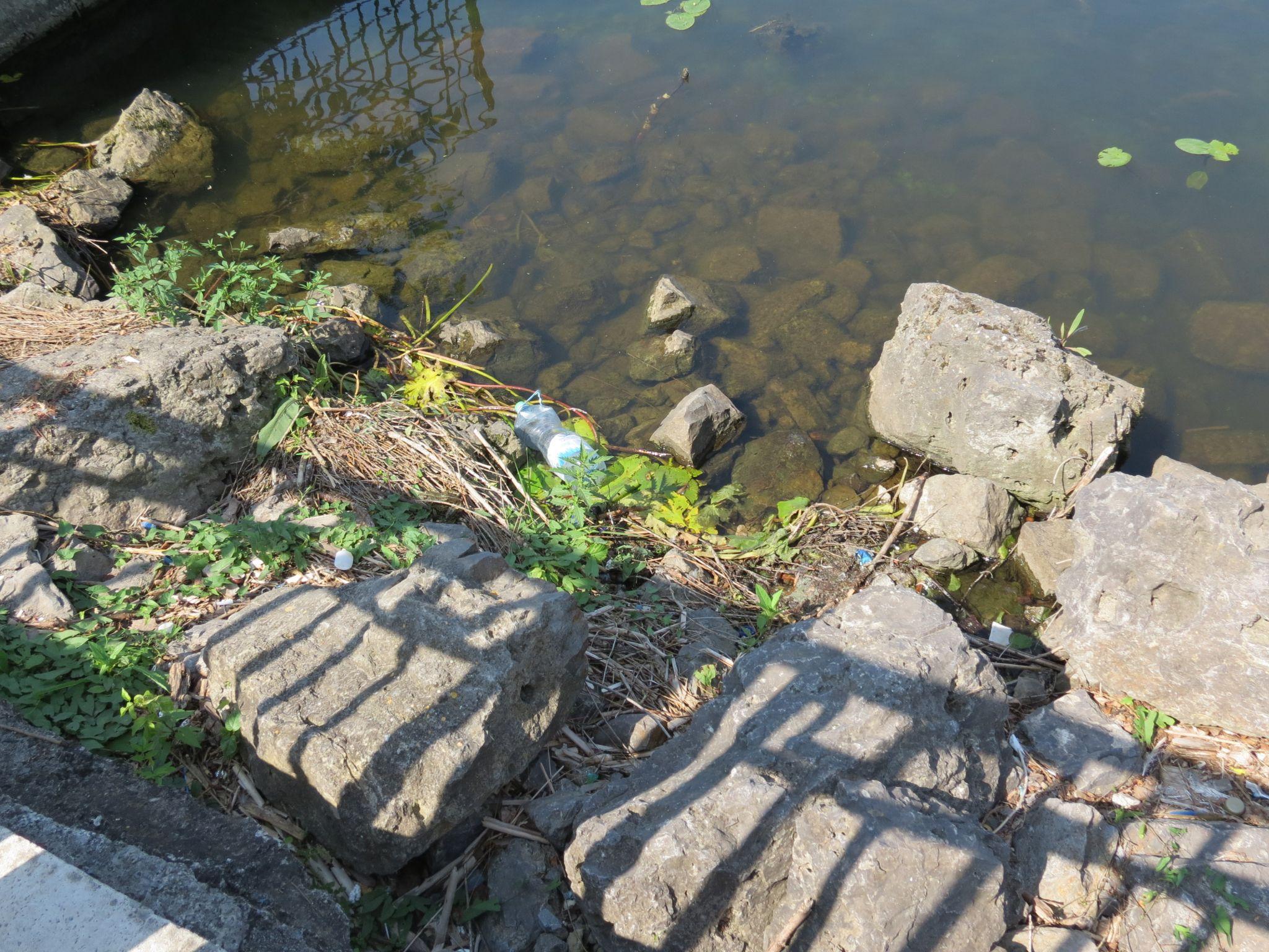 А от вздовж Тернопільського ставу є багато сміття. Порожні пляшки, кришечки, упаковки з-під їжі та чимало недопалків.