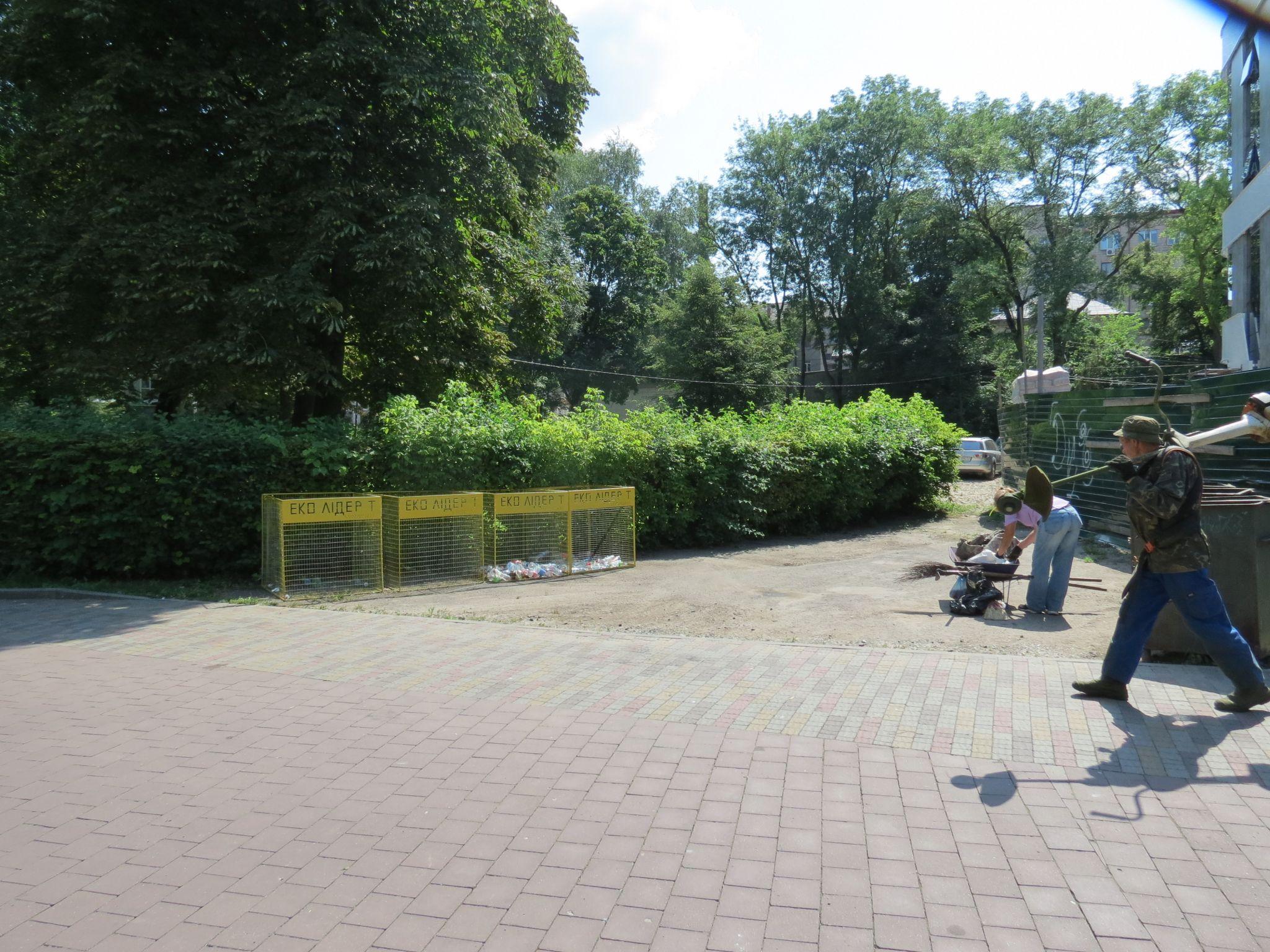 Також є великі контейнери та сітки для пластикових пляшок. Вони не були переповнені. Поруч прибирали працівники парку.