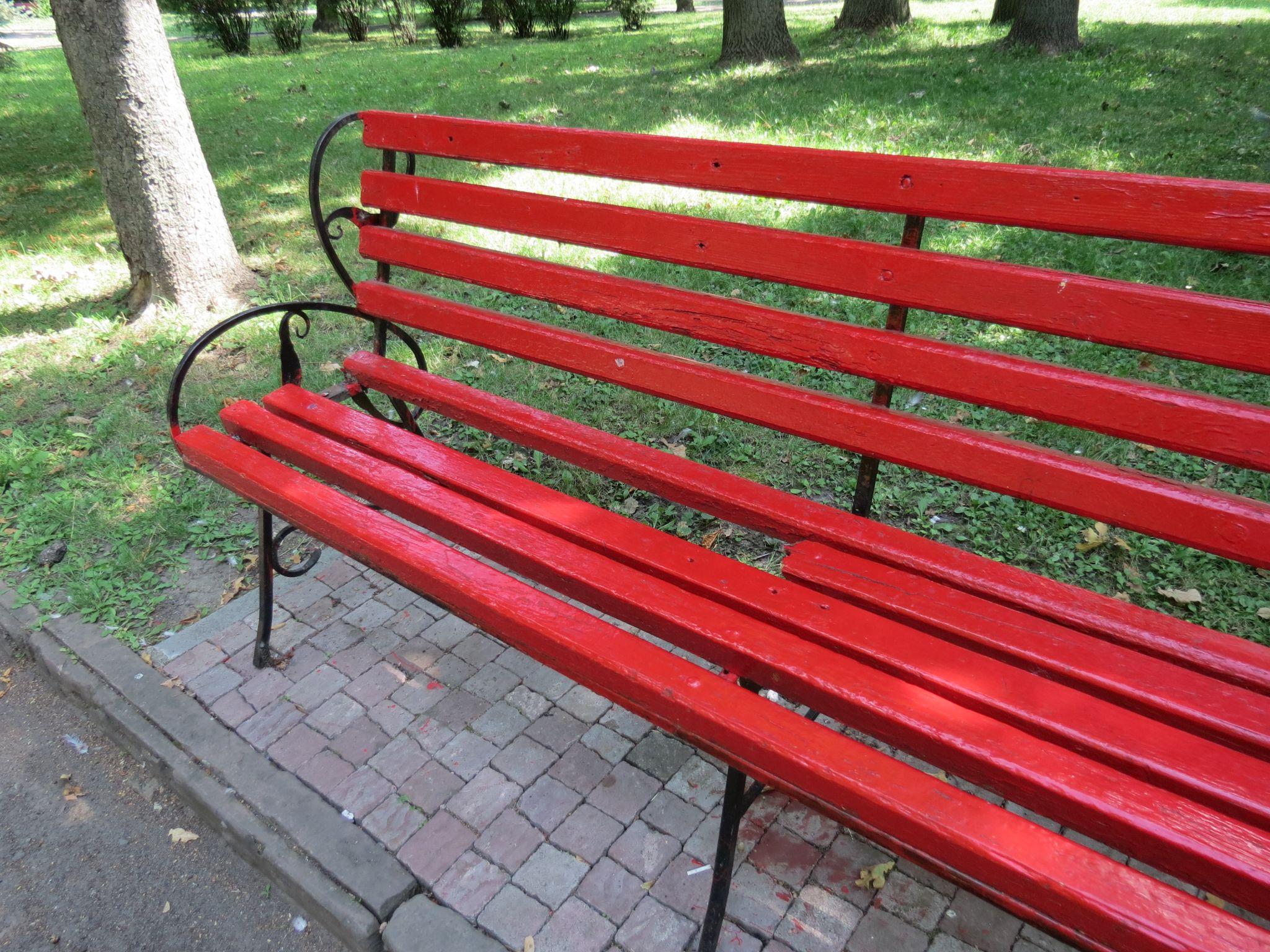 А от деякі лавки, які знаходяться під деревами, були у пташиному посліді.