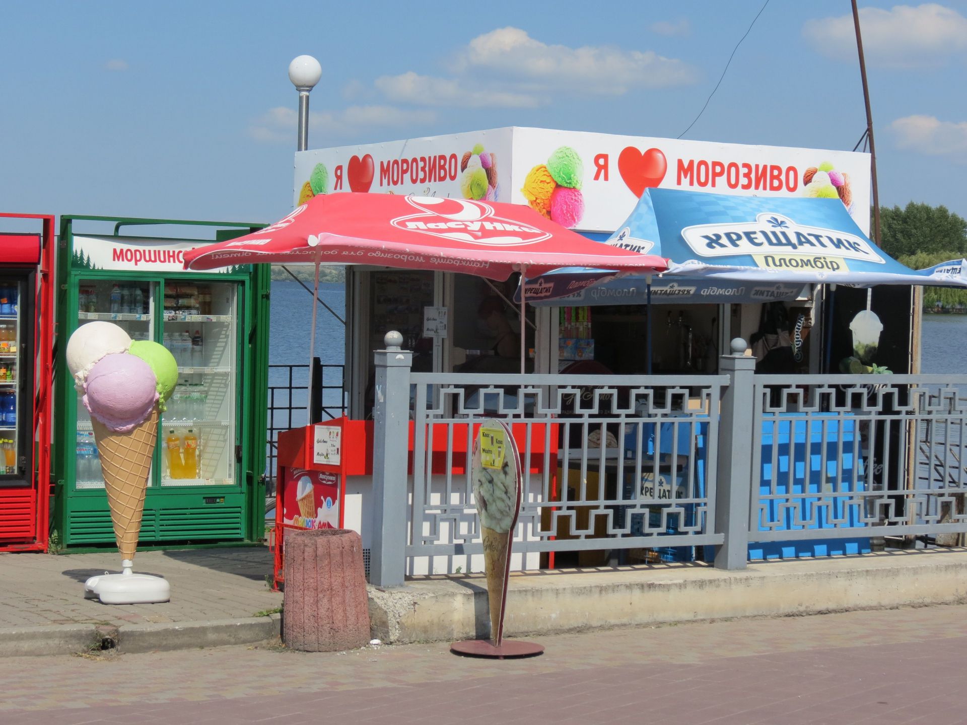 На причалі можна купити морозиво з фризера. Мале коштує 45 гривень, велике – 65 грн. Також є макфлурі «снікерс», полуниця, вишня, банан, шоколад. За 75 гривень.