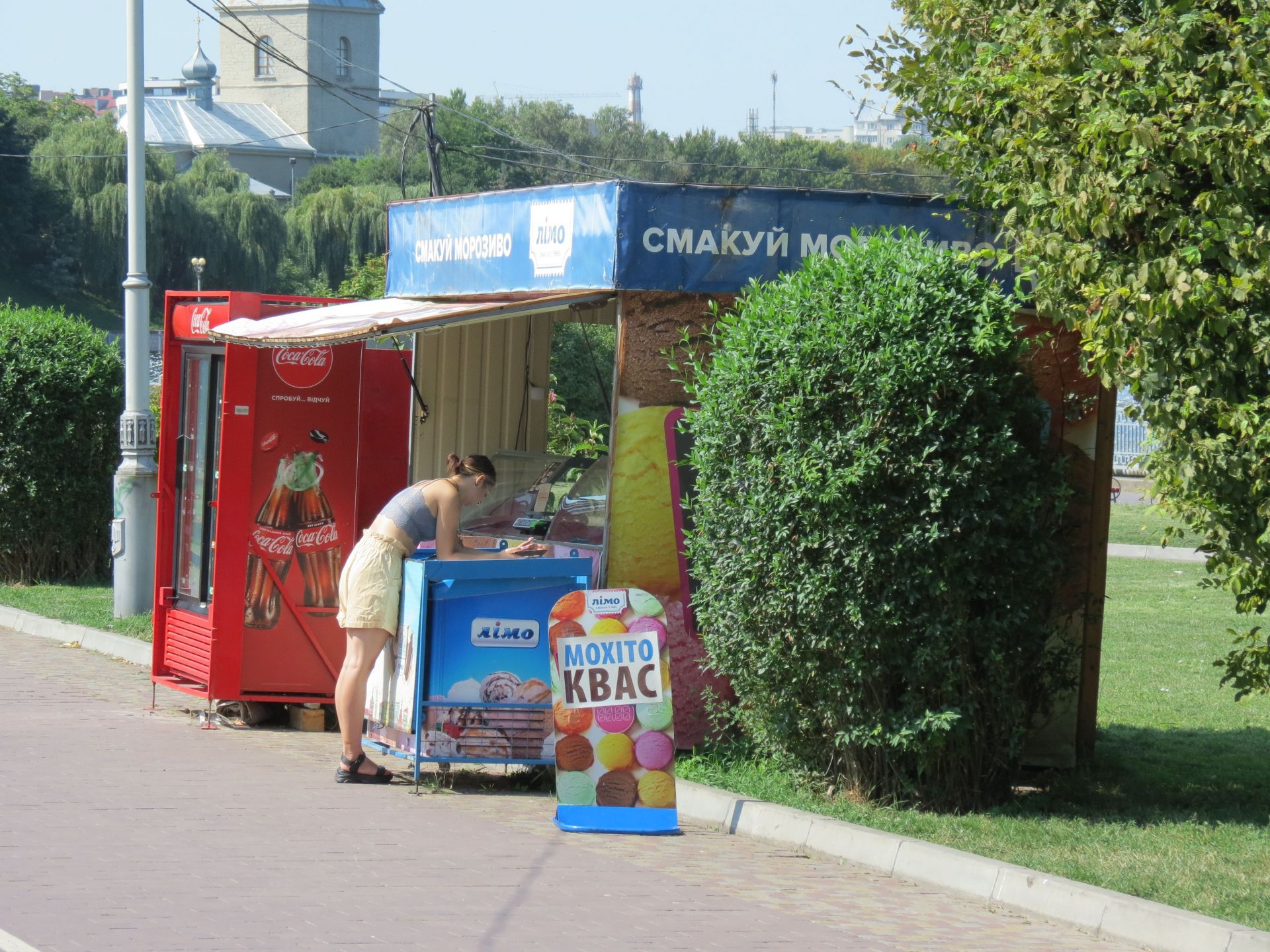 Біля входу на дитячий майданчик з Дядьой Стьопой є кіоск, де продають морозиво із фризера. Вершкове, шоколадне та вершково-шоколадне коштує 35 гривень. Кольорове морозиво – 40 гривень. Макфлурі з вишнею, шоколадом чи іншими смаками коштує 50 гривень. Макфлурі з манго, маракуйя з кісточкою та кранч арахіс найдорожчі – 55 гривень. Вафельні стаканчики тут по 5 гривень.