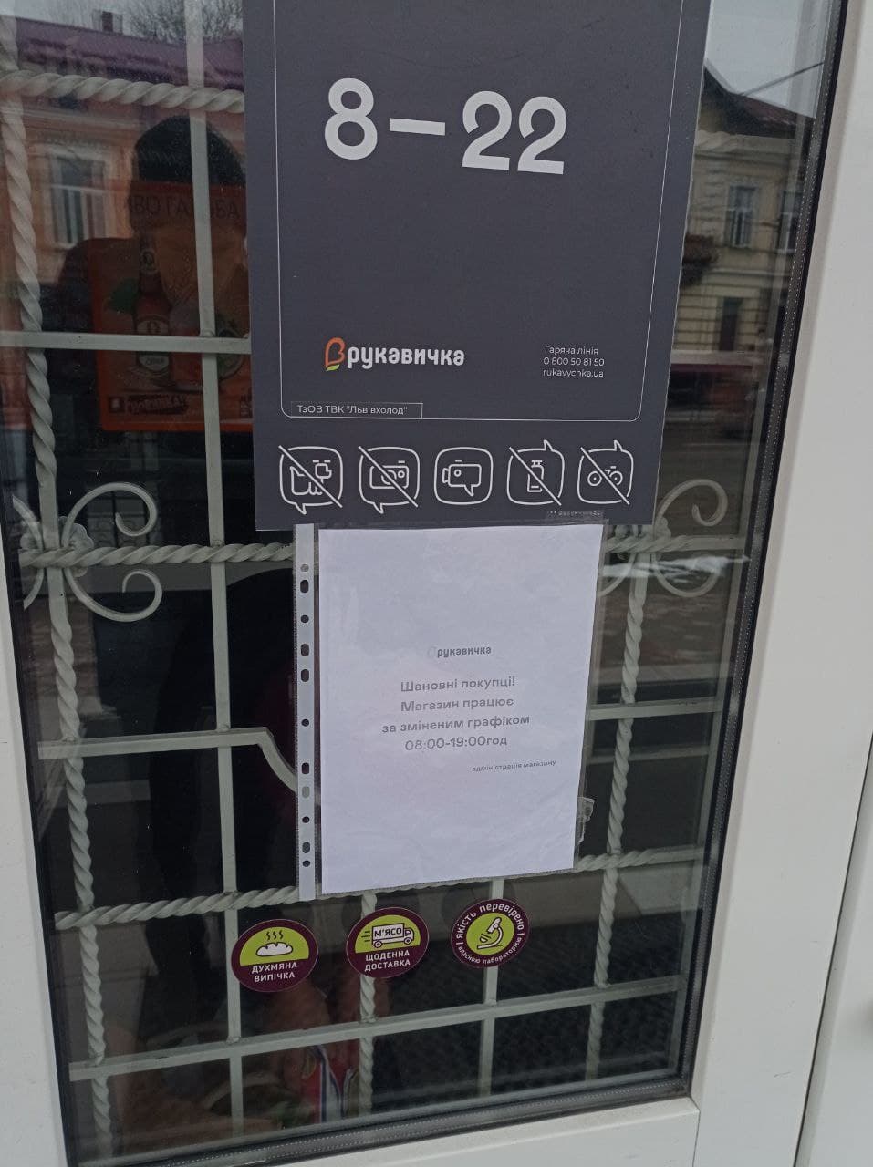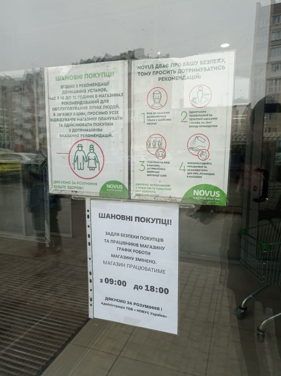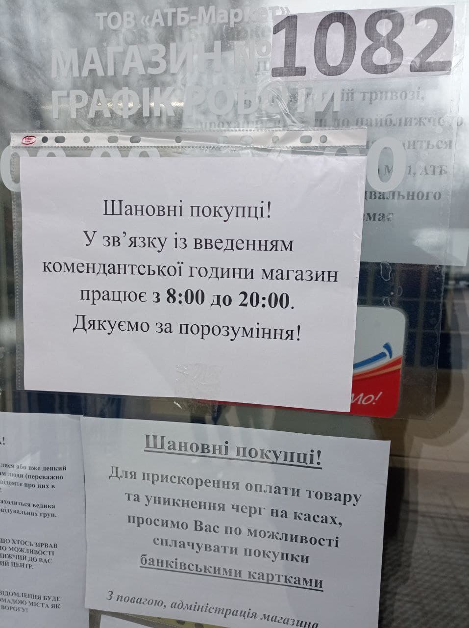 Крім нових графіків роботи, на вході до супермаркетів також вивісили оголошення про те, як вони працюють у випадку тривоги та що робити покупцям.