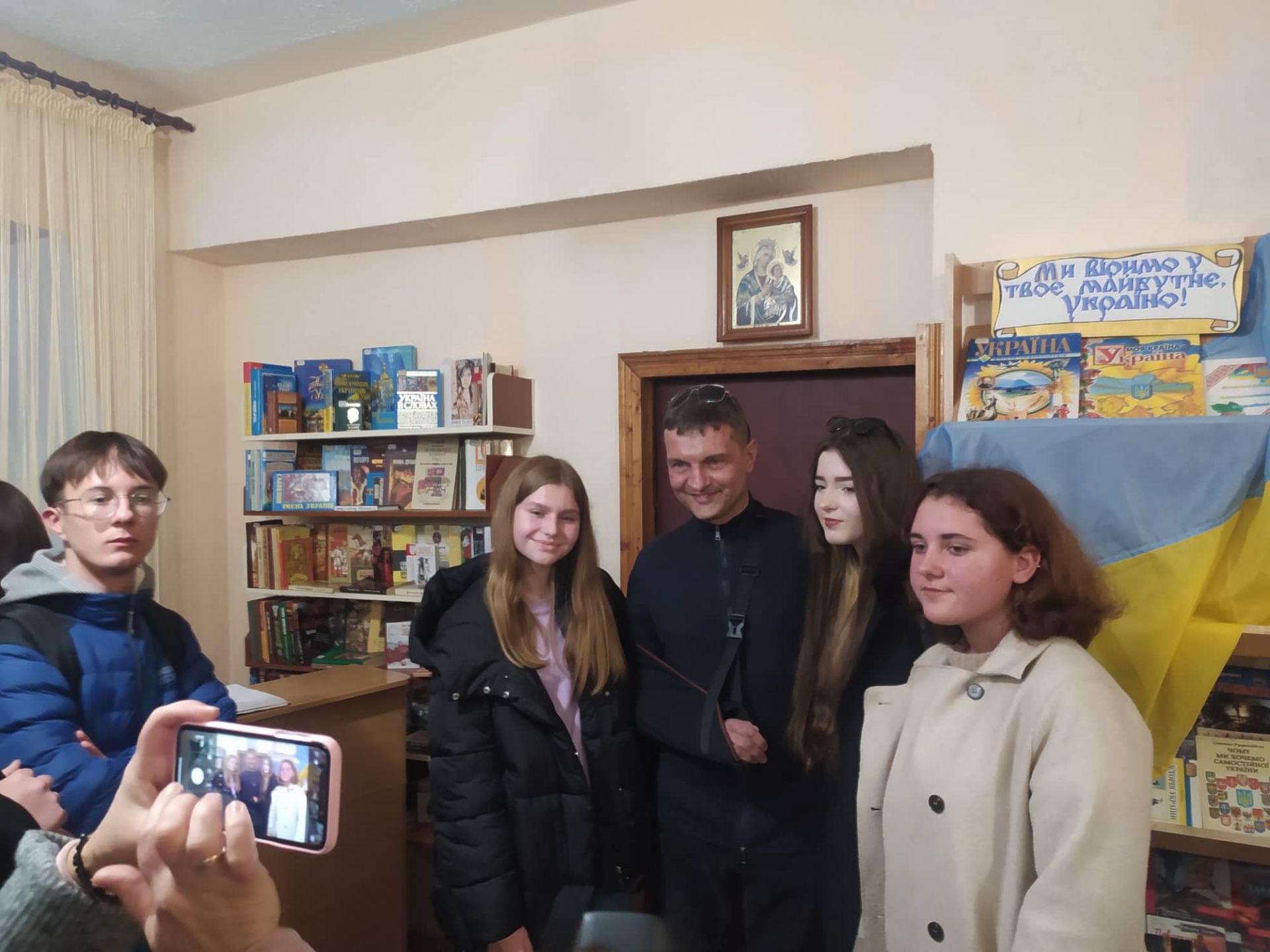 Як повідомляє Суспільне, Михайло прийшов зі своєю матір’ю, яка є активною читачкою цієї бібліотеки. На зустріч запросили учнів Тернопільського ліцею №21, бо Михайло Діанов був учнем цього навчального закладу.