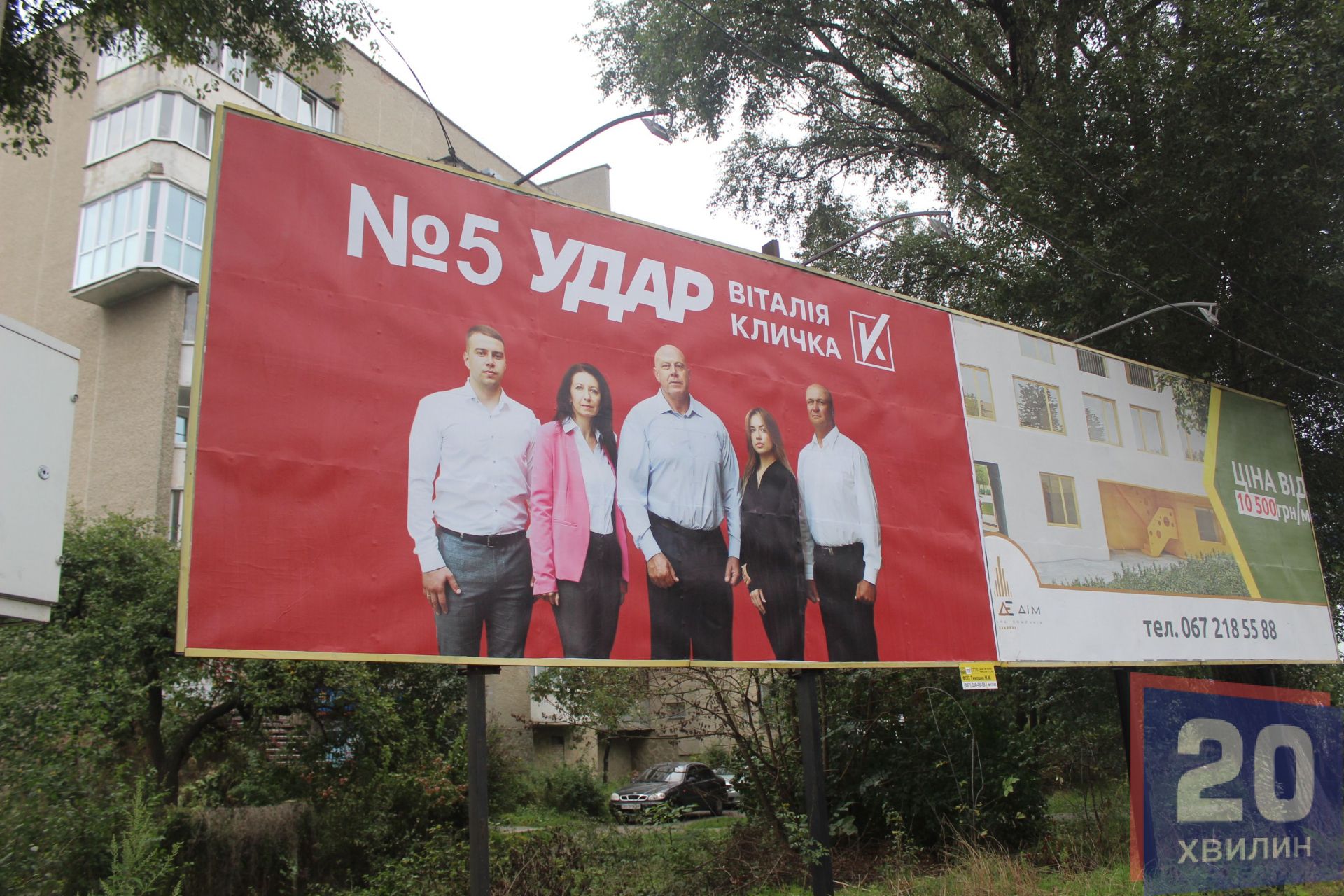 А от після того, як ми заїхали на проспект Степана Бандери – рекламних білбордів з кандидатами стало значне більше. Політики та гасла – чи не на кожному білборді. Чим далі від’їжджали від Центру, тим більше банерів займали політичні партії та кандидати.