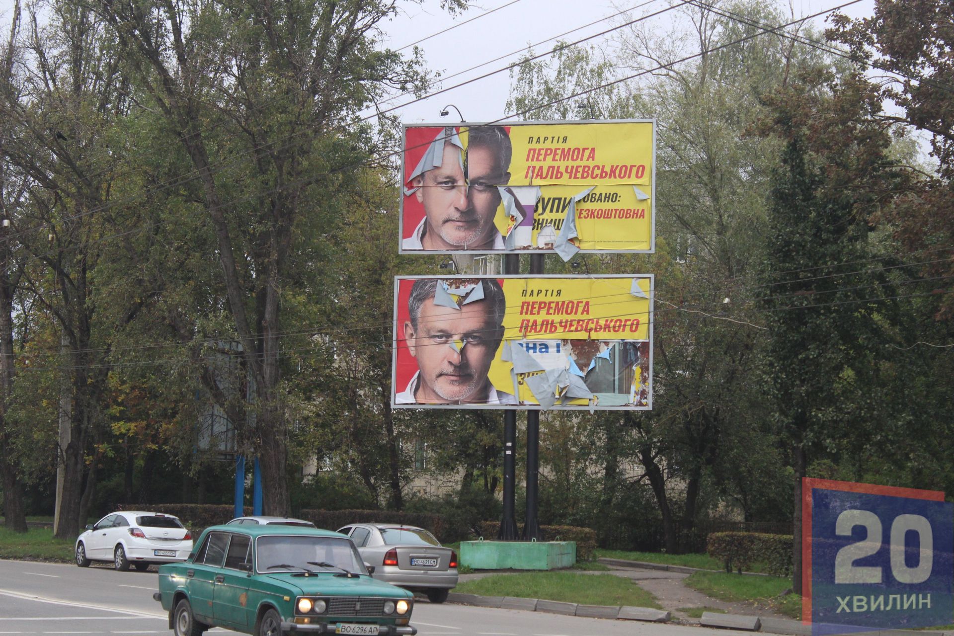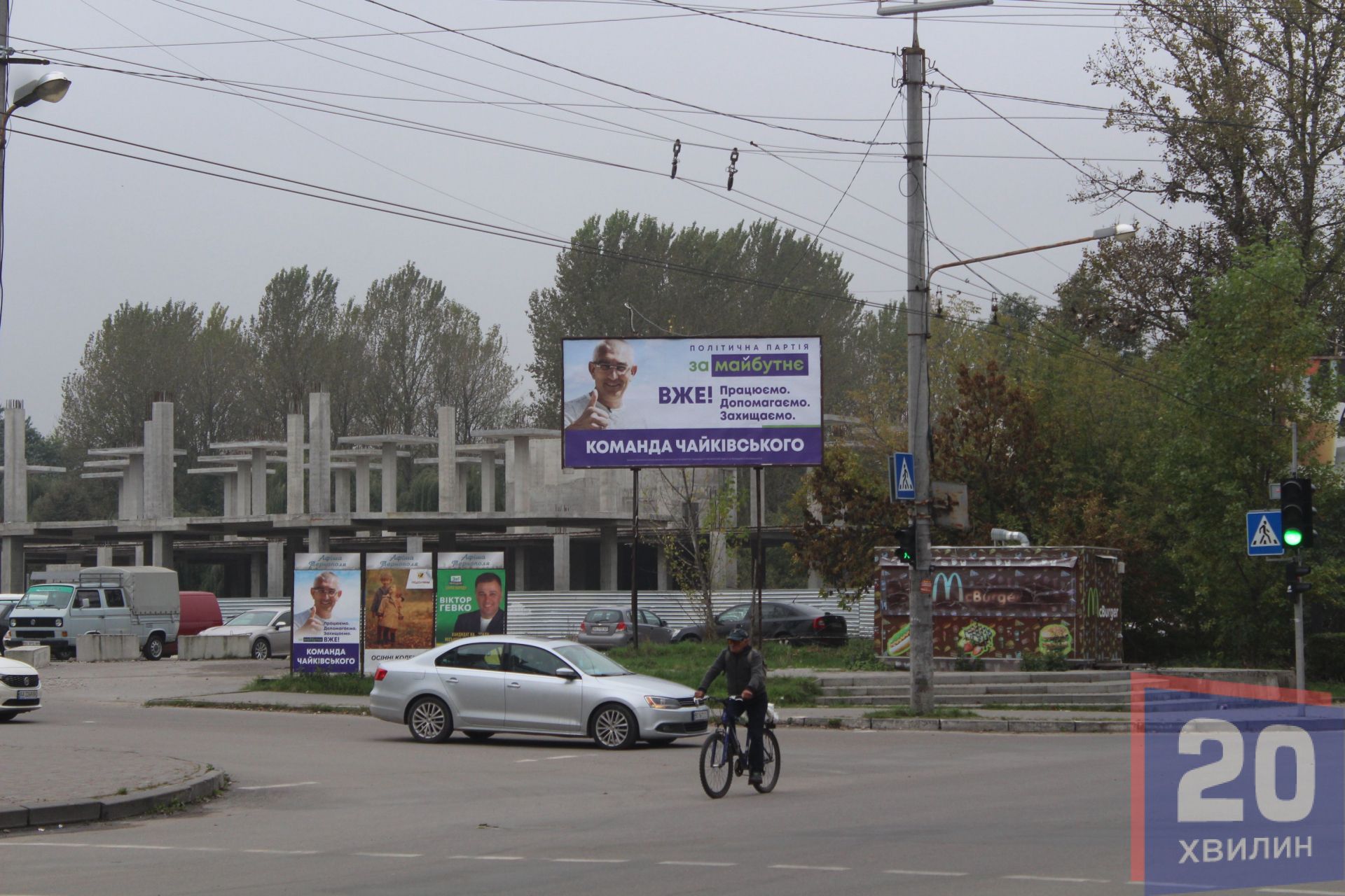 Біля «Літака» білбордів чимало.На кожному - команди, кандидати, номери в списках тощо. І так до самого кільця на перехресті проспекта Бандери та вулиці 15 квітння.