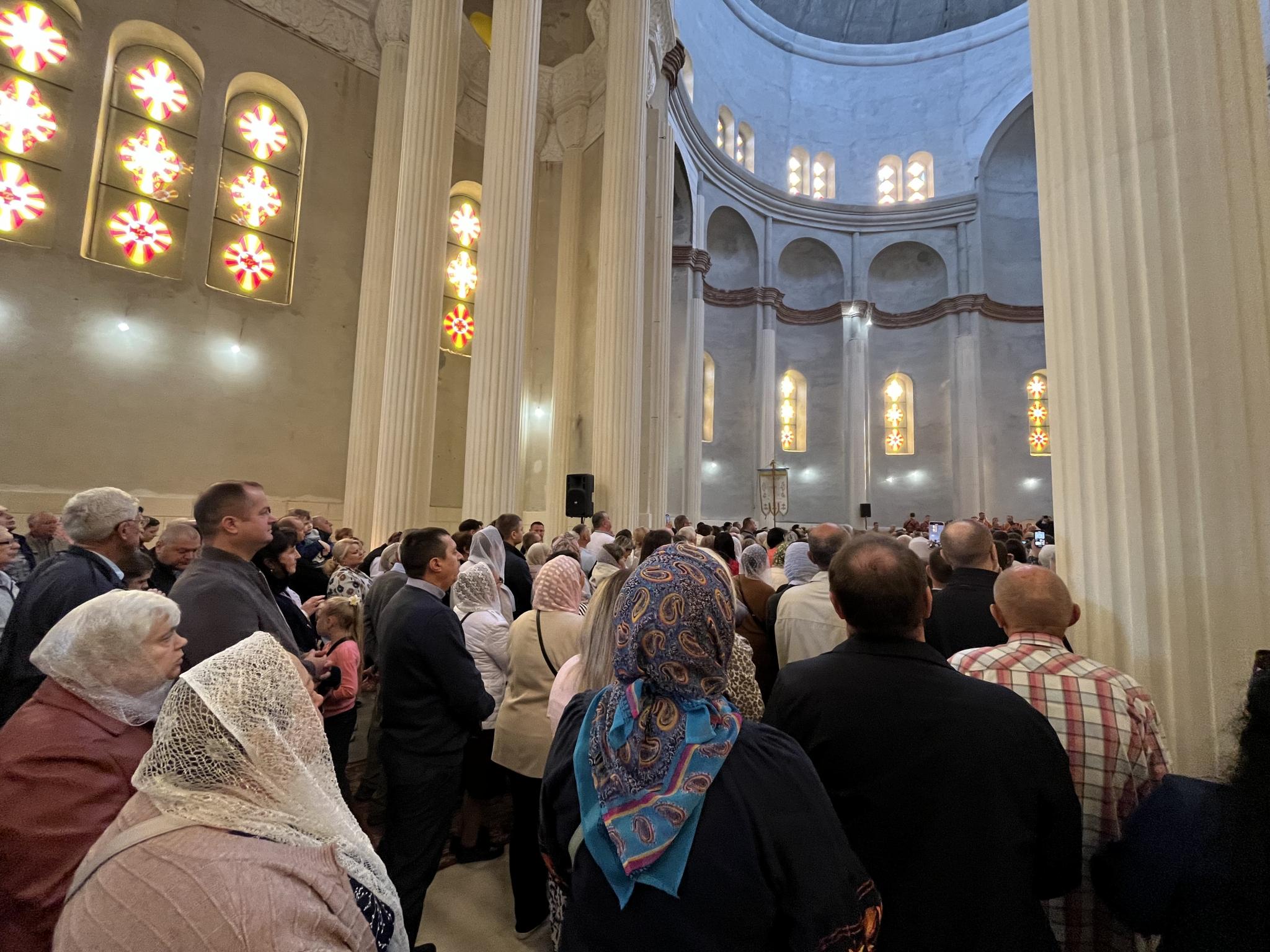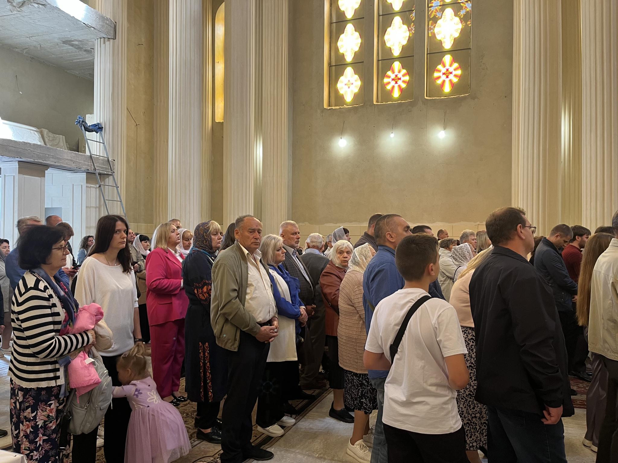 О 9 ранку Митрополит Епіфаній очолив святкове богослужіння у Кафедральному соборі святих рівноапостольних Костянтина і Єлени. Містяни долучилися до спільної молитви, під час якої вже традиційно просили про перемогу над ворогом та про мир.