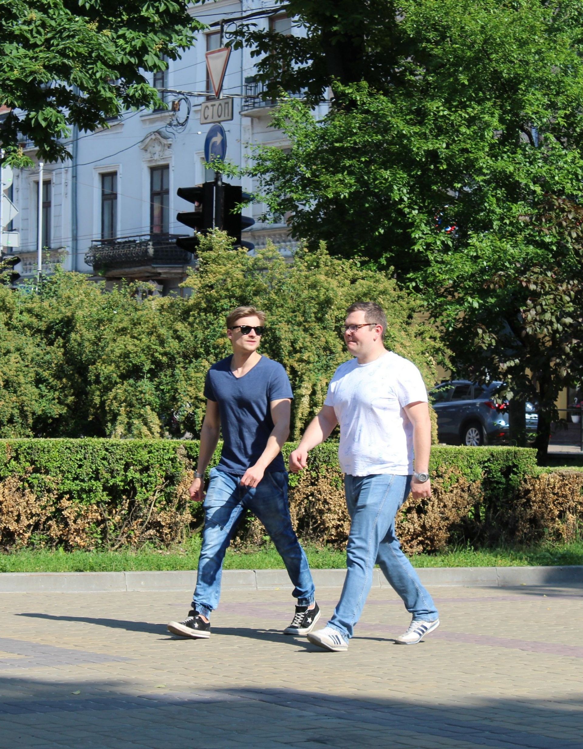 Досі актуальними залишаються звичайні джинсові, шорти-бермуди та карго шорти із легкої тканини. Тернополяни одягають їх разом з сорочками блакитного, салатового та світлих кольорів у дрібну клітинку, однотонними стрейчевими футболками, хтось, попри спеку, доповнює образ шкіряними куртками-«косухами» чи базовими светрами на «блискавці». Чоловіки носять із такими «луками», здебільшого, кросівки і кеди. Із аксесуарів – переважно рюкзаки та сумки на поясі, годинники та сонцезахисні окуляри.