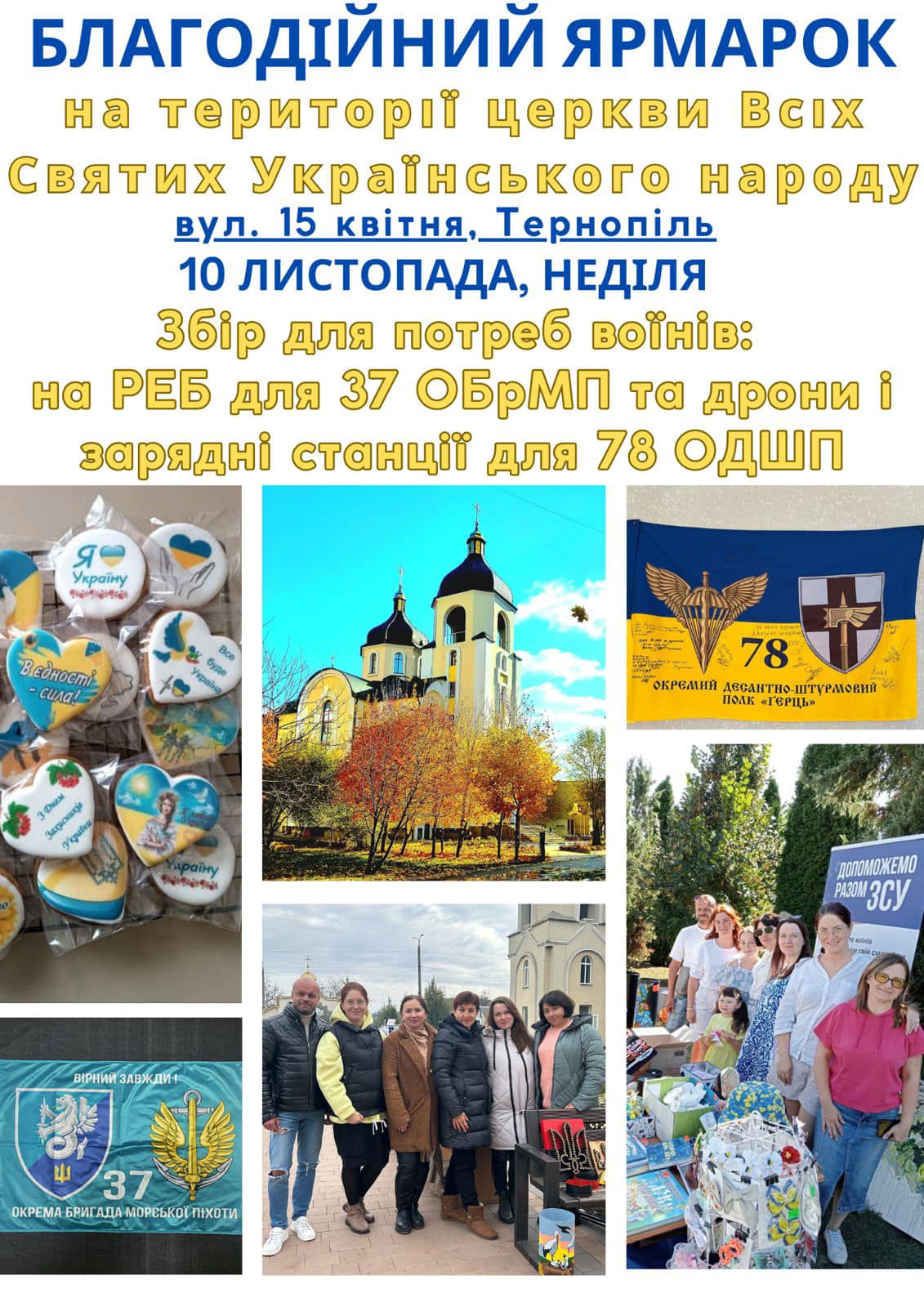 Благодійний ярмарок проведуть 10 листопада на території церкви Всіх Святих Українського Народу в Тернополі на вулиці 15 Квітня, біля «Болгарського» магазину.