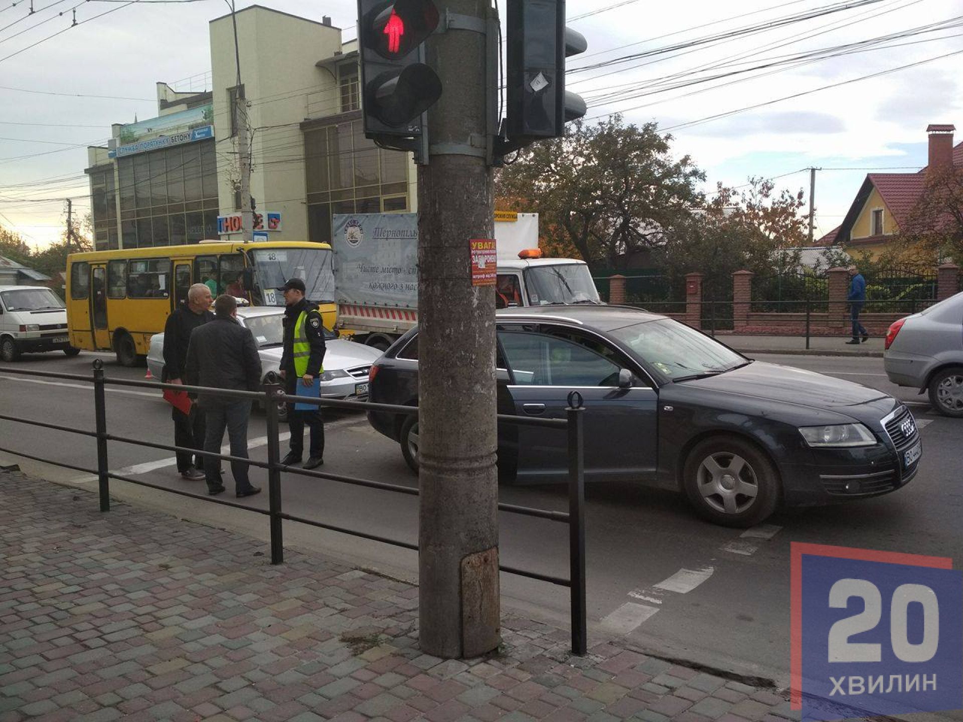 Аварія, в якій перед світлофором на просп. Бандери зіткнулись таксі та Audi, трапилась 19 жовтня близько 10.00.