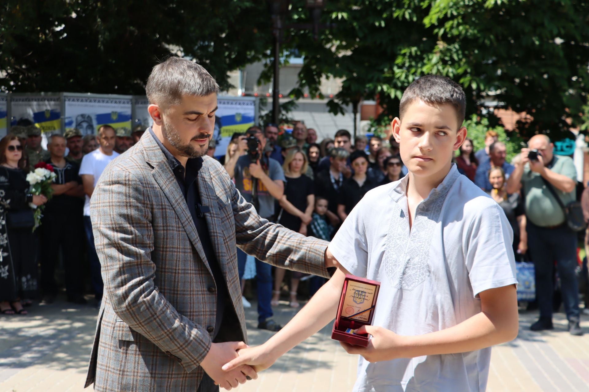 На відкритті нагородили захисників та вручили державні нагороди родинам загиблих.