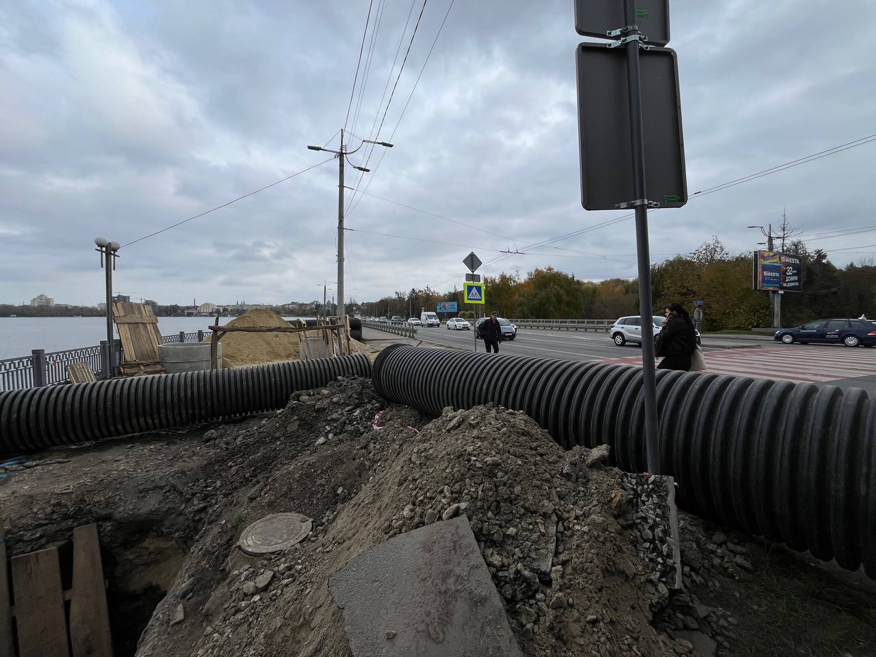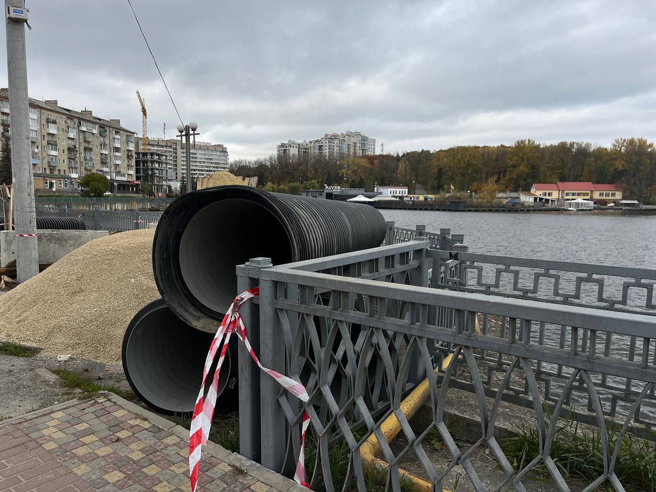 Купи піску, гофровані труби, дерев’яні конструкції та шматки знятого асфальту – саме такий вигляд має частина дамби Тернопільського ставу, що ближче до вулиці Чумацької.