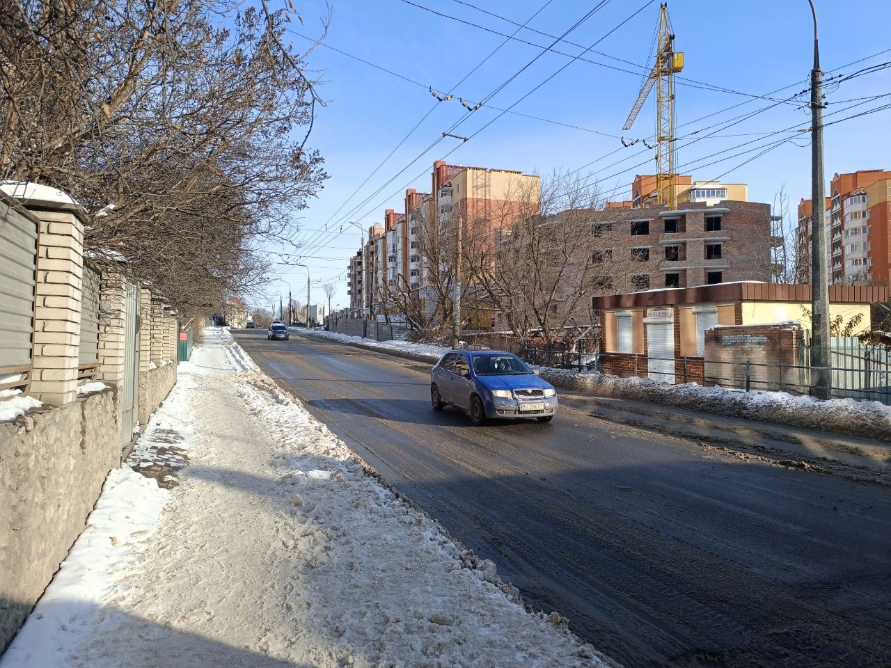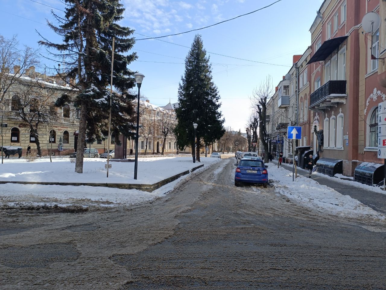 Вулиця Соломії Крушельницької була очищена від снігу, але тротуари в деяких місцях не посипані.