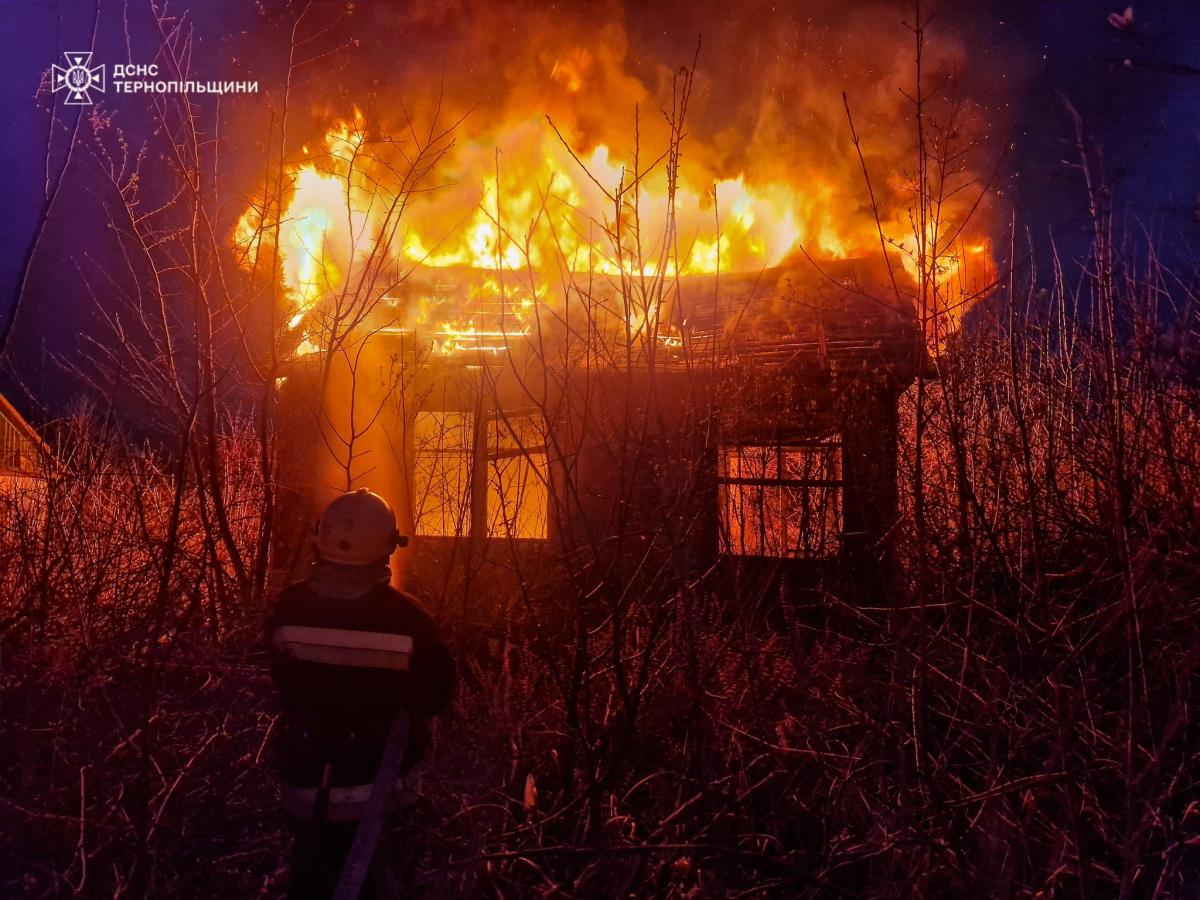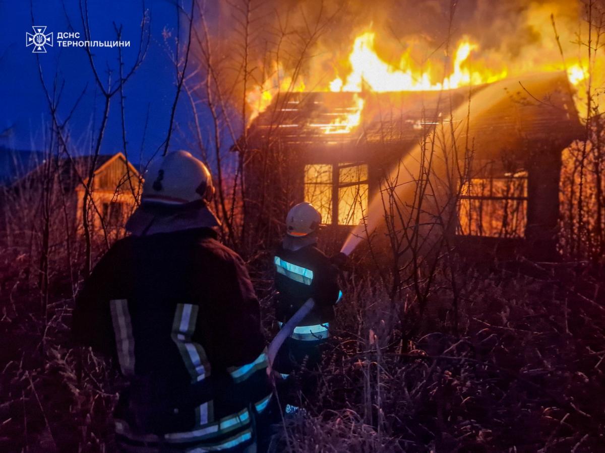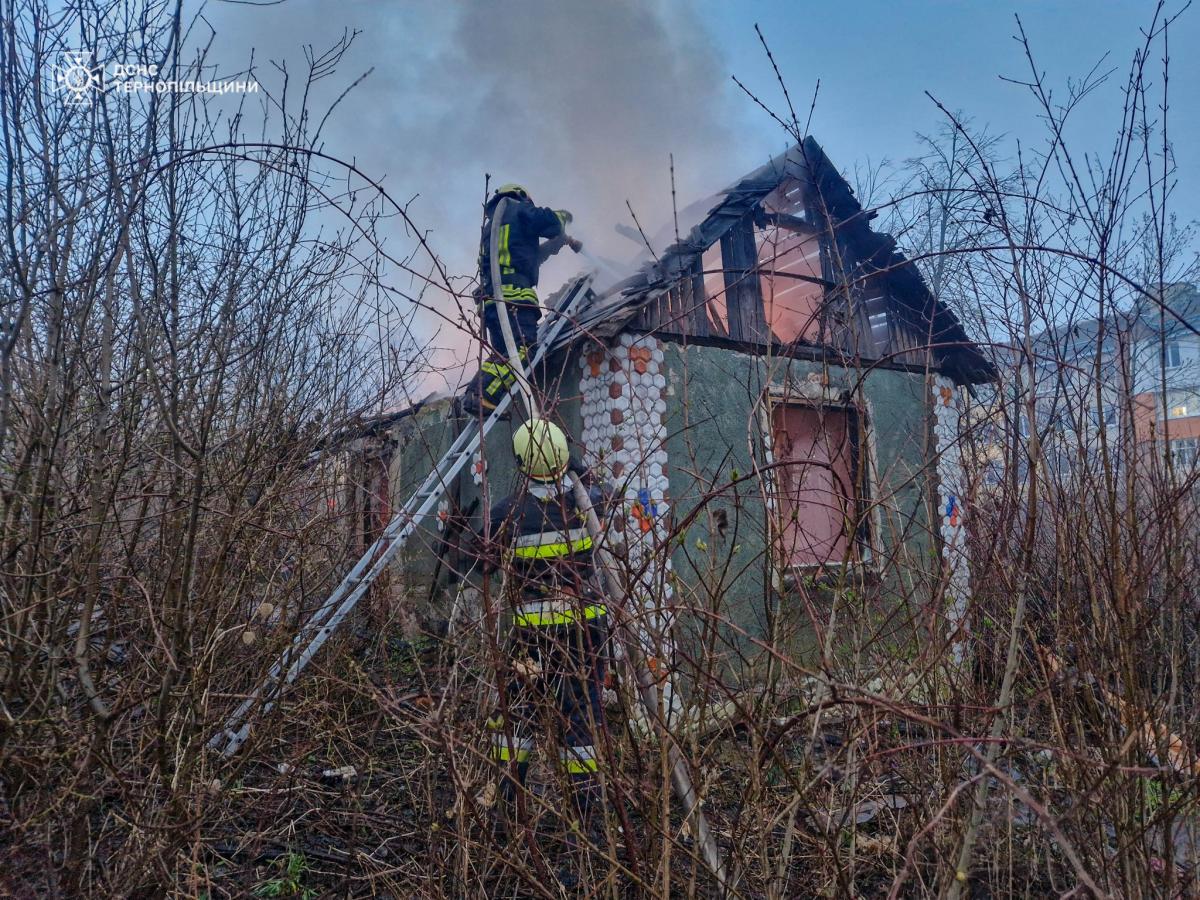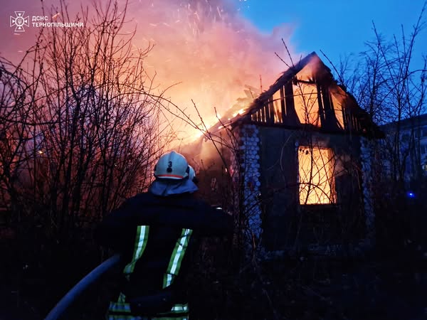 1 квітня о 6:08 у Тернополі по вул. Київській, на території недіючого садового кооператива, виникла пожежа садового дачного будинку площею 22 м.кв .