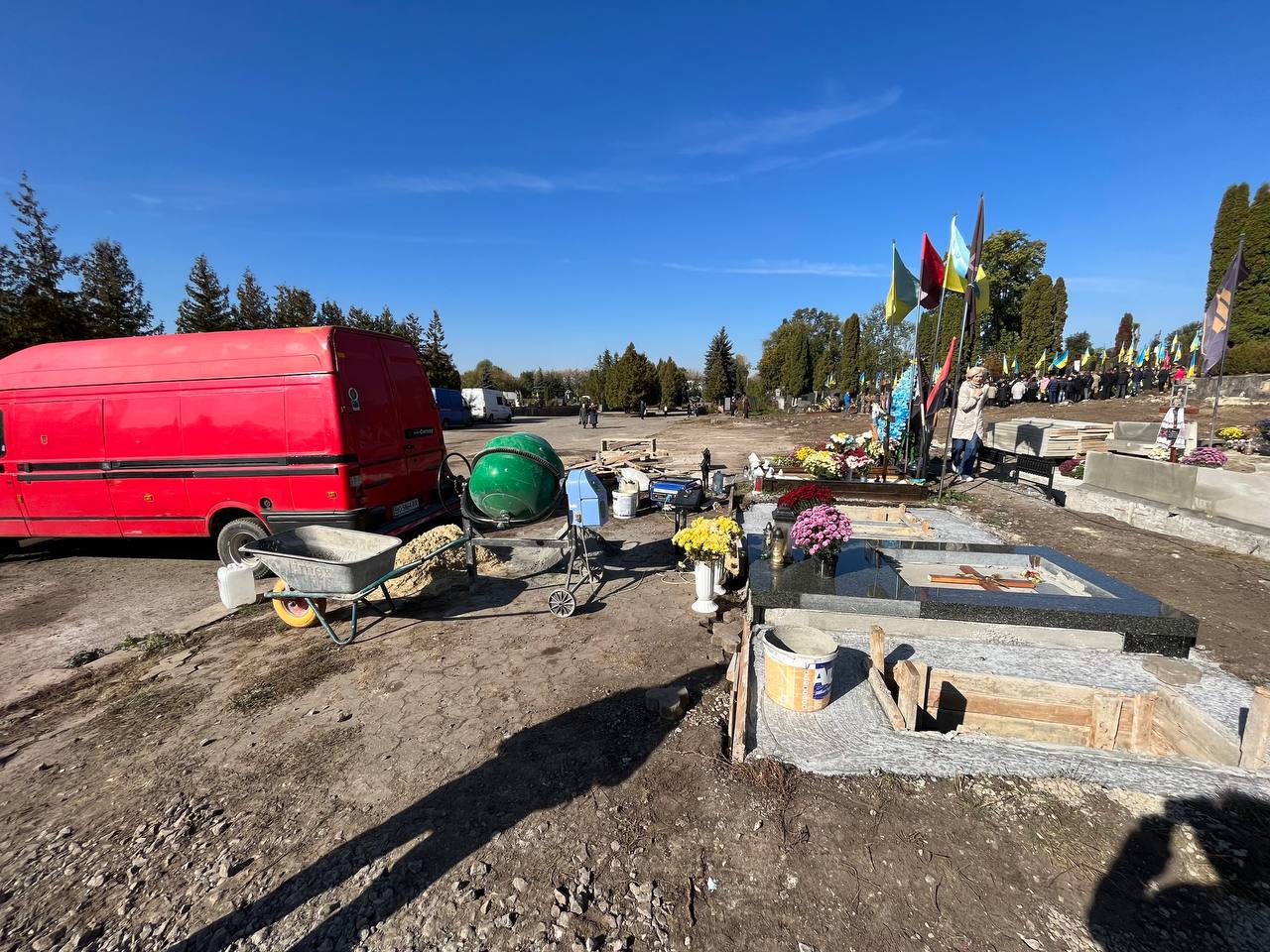 — Наскільки мені відомо, то могилу будуть оформлювати гранітом. Ми вже можемо побачити великі чорні плити, що значно відрізняються від нашої концепції. Також встановлять великий хрест, а перед ним у масштабі один до одного статую загиблого захисника. Чоловік буде у формі, зі зброєю та квітами. Чому саме так – нам ніхто не пояснював і пояснювати не збирається. Вони просто найняли будівельників, які від 16 жовтня вже тут працюють без жодних дозволів, — повідомляє дівчина.