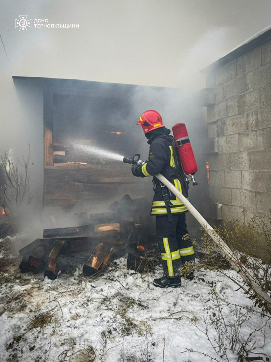 Менш ніж за дві години, о 11:31, пожежа виникла у Збаражі. Загорівся піднавіс із дровами. Через щільно складене паливо полум’я швидко поширювалося та охопило площу близько 20 м². Підрозділ, який прибув на місце події, не допустив переходу вогню на сусідню будівлю.