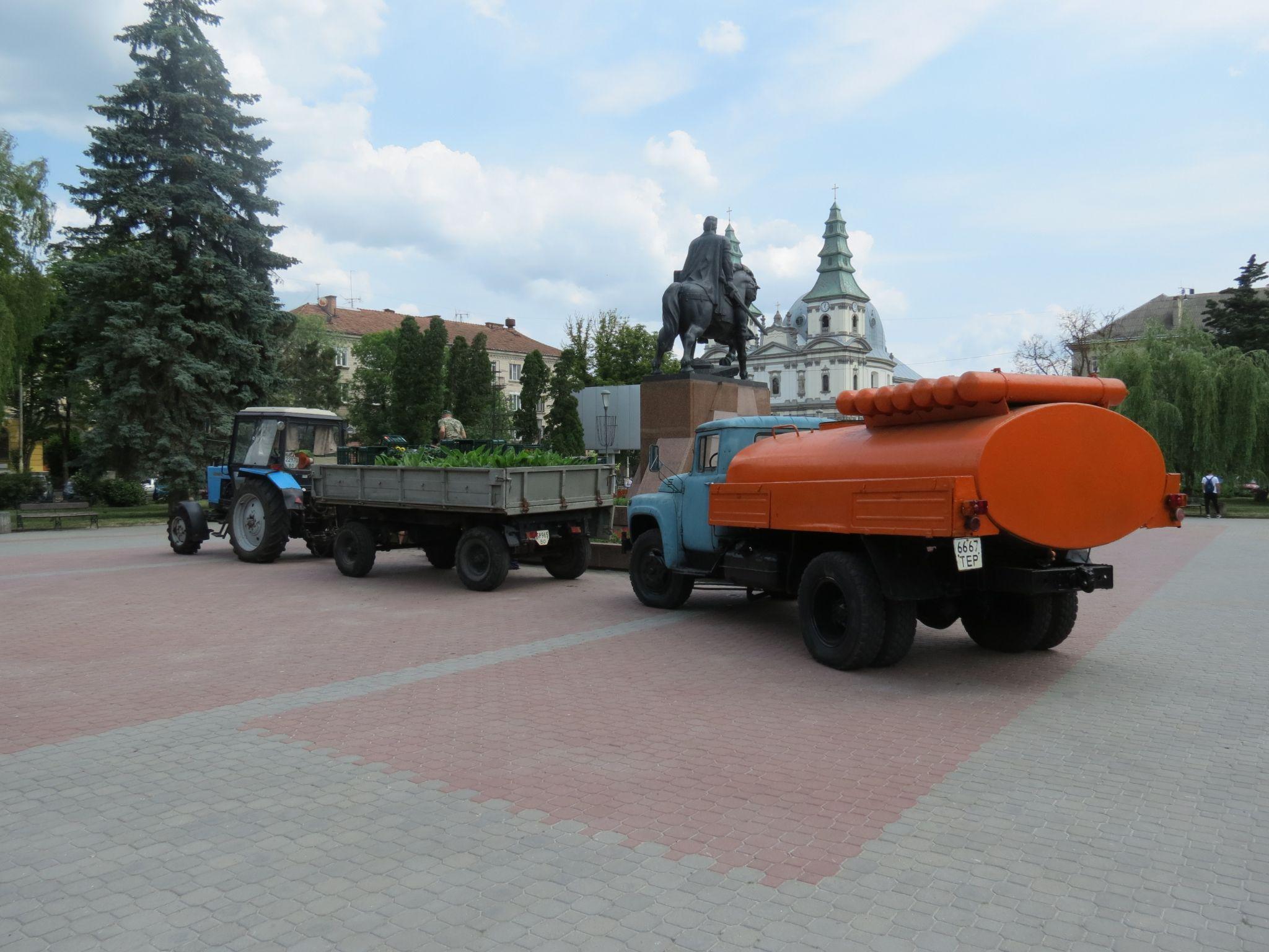 Навколо пам'ятника Данилові Галицькому висадили квіти на клумбі. У містрі тривають роботи з озеленення. Дивіться, який вигляд має клумба!