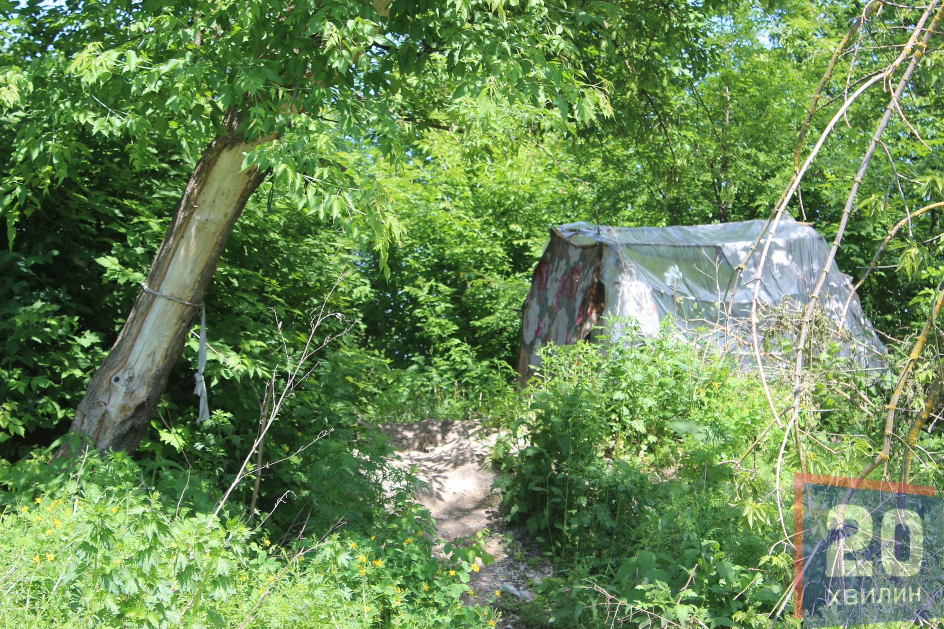Як виявилося, спалений ромський табір був не єдиним у смт. Велика Березовиця. Ми натрапили на ще один покинутий циганський наметовий табір,який знаходиться поблизу автозаправки Wog. Здалеку він схожий на звичайне сміттєзвалище. Повсюди розкидані речі та сміття. Намети зроблені із брудних покривал, у таборі жахливий сморід.