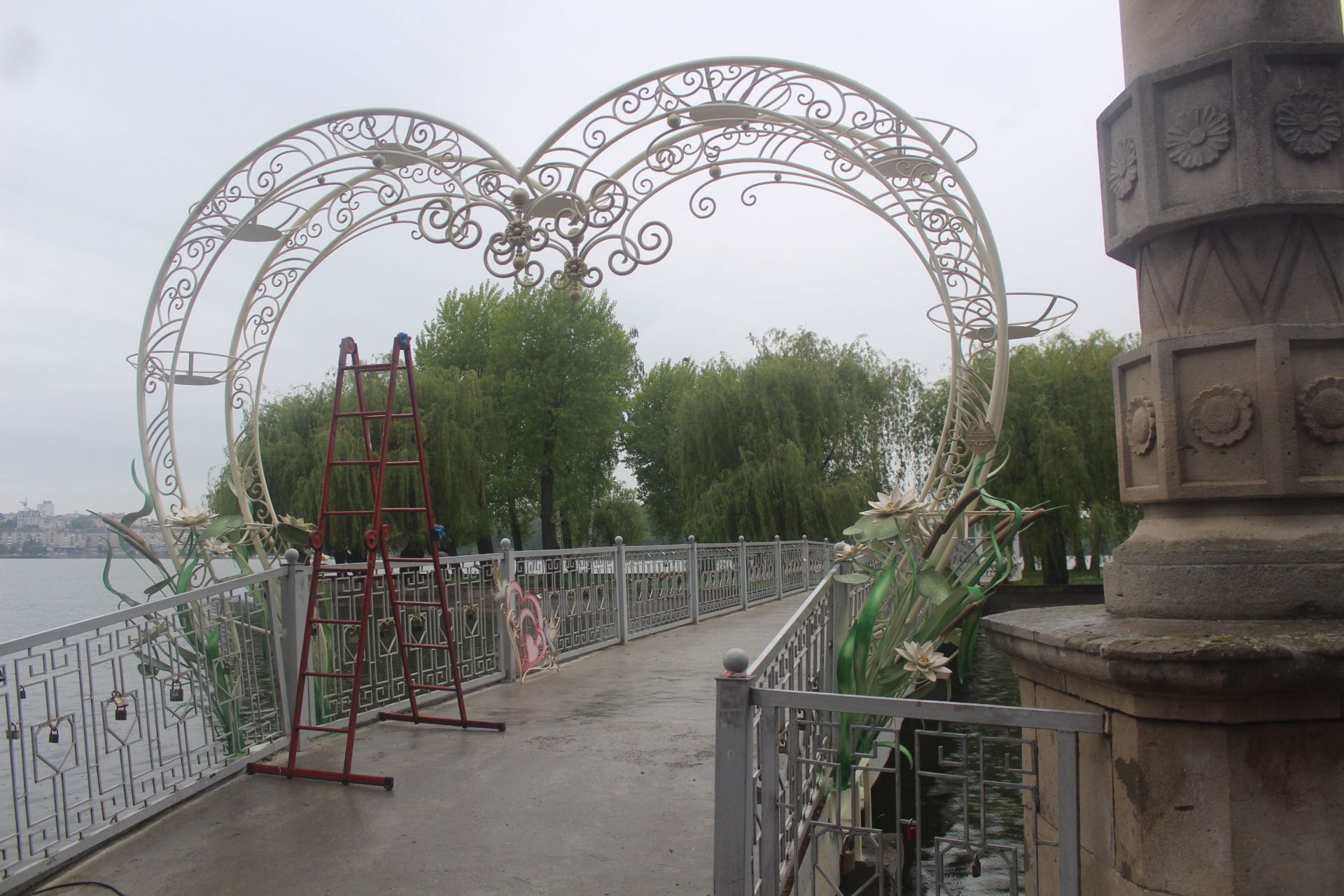 Нову ковану арку у вигляді серця почали встановлювати у п’ятницю, 15 травня. Кована арка має місця для квітів. Прикрашають її і багато деталей – квіти, очерет, листя. Арку встановили за кілька годин. Чимало тернополян уже почали фотографуватися на фоні арки.